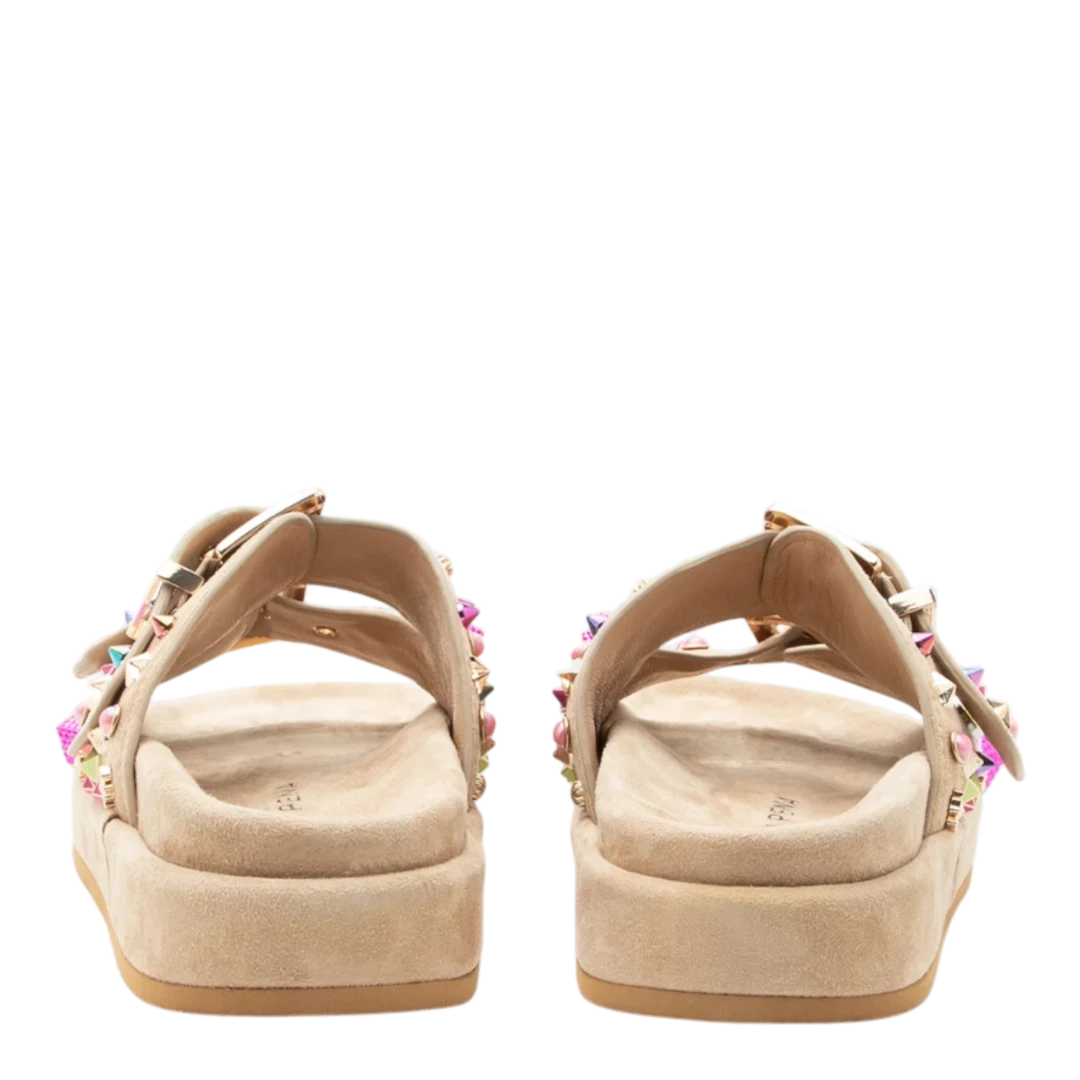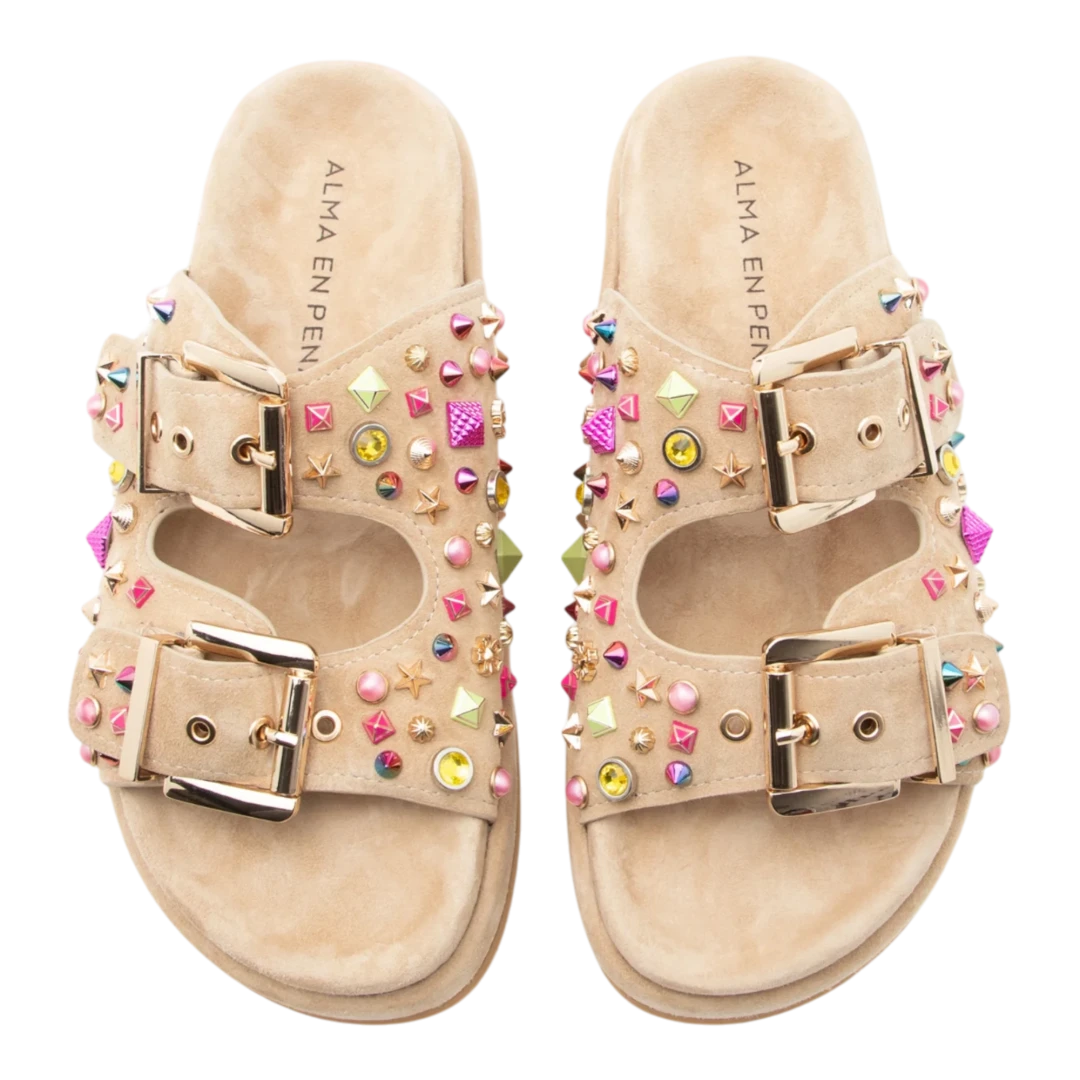 Osnovan u Španiji, brend Alma en Pena poznat je po prepoznatljivom spoju udobnosti, ženstvenosti i luksuzno dizajniranih detalja. Njihove cipele i sandale karakterišu blistavi ukrasi, nježni tonovi, prirodni materijali i boho glam estetika – idealni za žene koje žele da svaki korak odiše stilom i osobnošću. Posebna pažnja posvećena je udobnosti – anatomski ulošci, lagani potplati i kvalitetna izrada čine Alma en Pena obuću savršenim izborom za cjelodnevno nošenje, bez odricanja od efektnog izgleda.