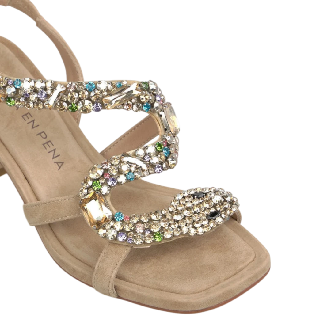 Osnovan u Španiji, brend Alma en Pena poznat je po prepoznatljivom spoju udobnosti, ženstvenosti i luksuzno dizajniranih detalja. Njihove cipele i sandale karakterišu blistavi ukrasi, nježni tonovi, prirodni materijali i boho glam estetika – idealni za žene koje žele da svaki korak odiše stilom i osobnošću. Posebna pažnja posvećena je udobnosti – anatomski ulošci, lagani potplati i kvalitetna izrada čine Alma en Pena obuću savršenim izborom za cjelodnevno nošenje, bez odricanja od efektnog izgleda.