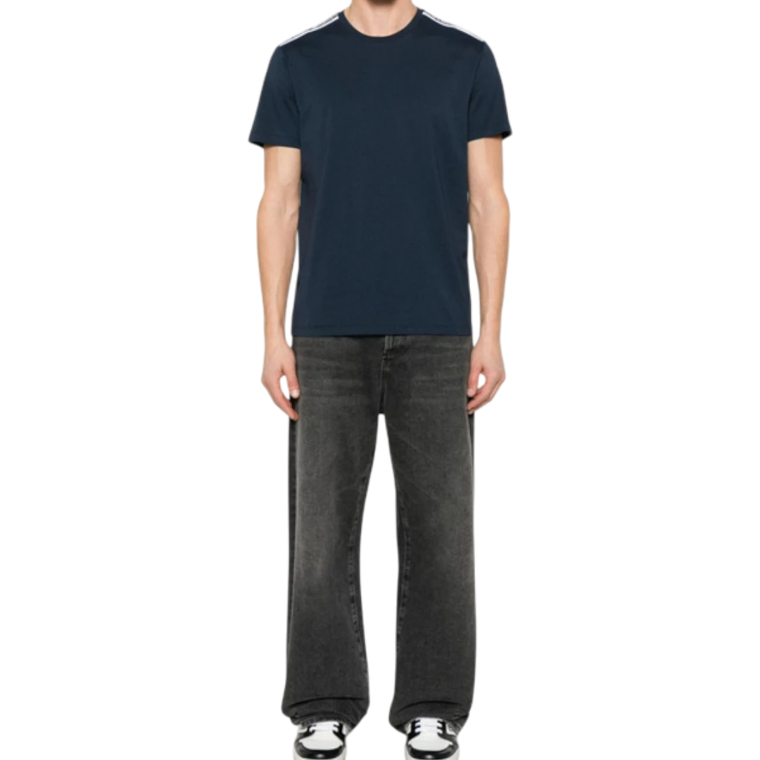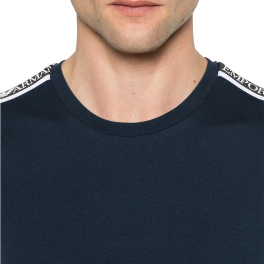Ova elegantna i moderna majica iz Emporio Armani kolekcije ističe se čistim linijama i luksuznim detaljima koji naglašavaju sportsko-casual stil brenda. Izrađena od kvalitetnog, mekanog i prozračnog pamuka, pruža maksimalnu udobnost tokom cijelog dana. Poseban vizuelni akcenat daju brendirane trake s Emporio Armani logotipom postavljene duž ramena, koje ovoj klasičnoj majici dodaju prepoznatljivu premium notu.