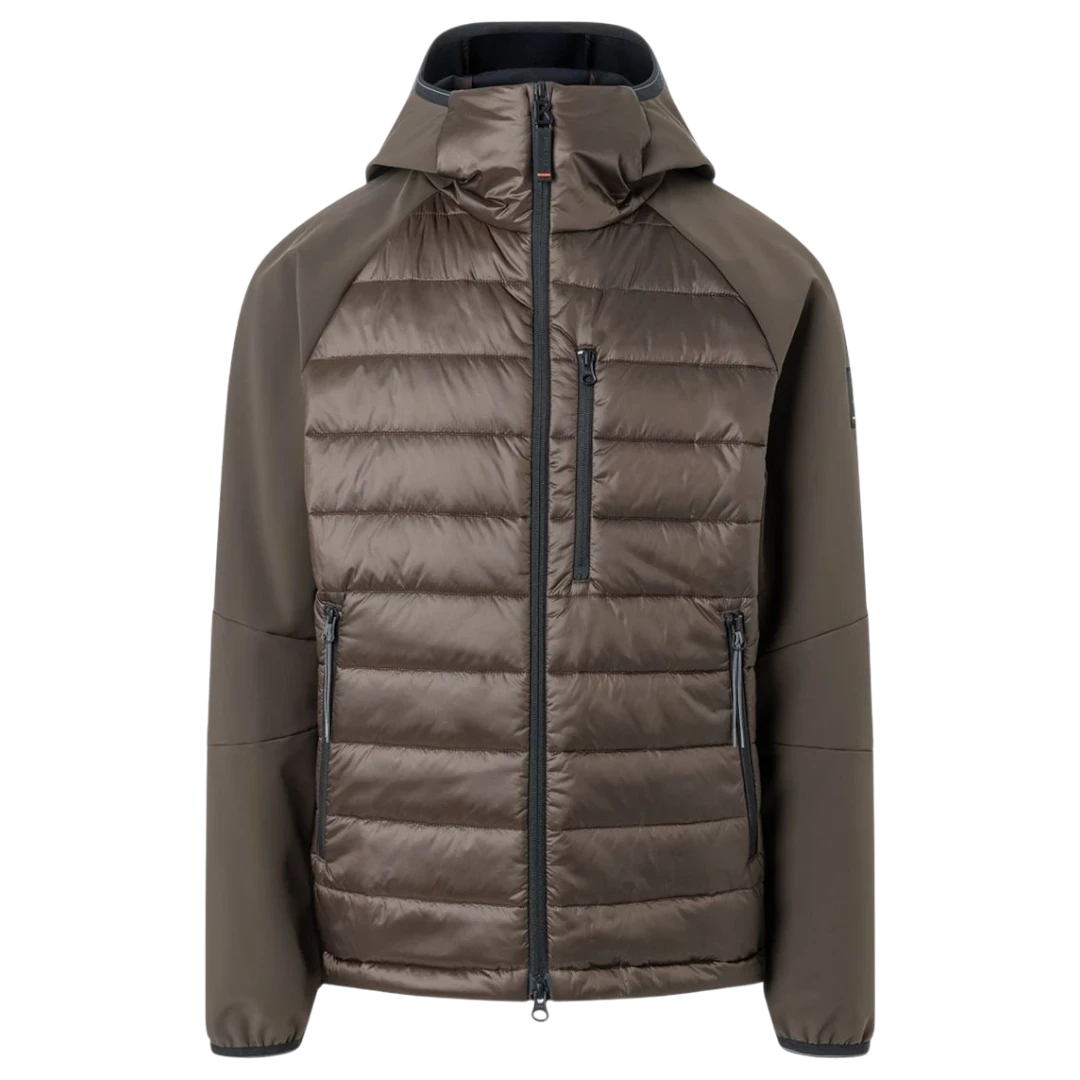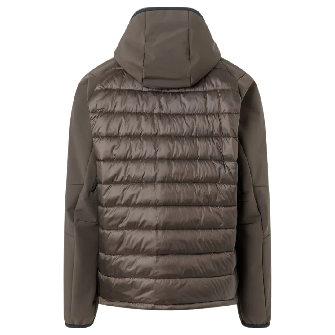 Bogner FIRE+ICE muška jakna u elegantnoj smeđoj nijansi kombinuje sportski dizajn i luksuzne materijale. Prednji dio sa sjajnim prošivima pruža toplinu i moderan izgled, dok rukavi i leđa od softshell tkanine nude potpunu slobodu pokreta i otpornost na vjetar. Podesiva kapuljača i praktični džepovi s patent zatvaračima ističu funkcionalnost, a diskretan FIRE+ICE logo na rukavu potvrđuje prepoznatljiv stil brenda. Idealna za urbane zimske dane i casual outfite s dozom sofisticiranosti.