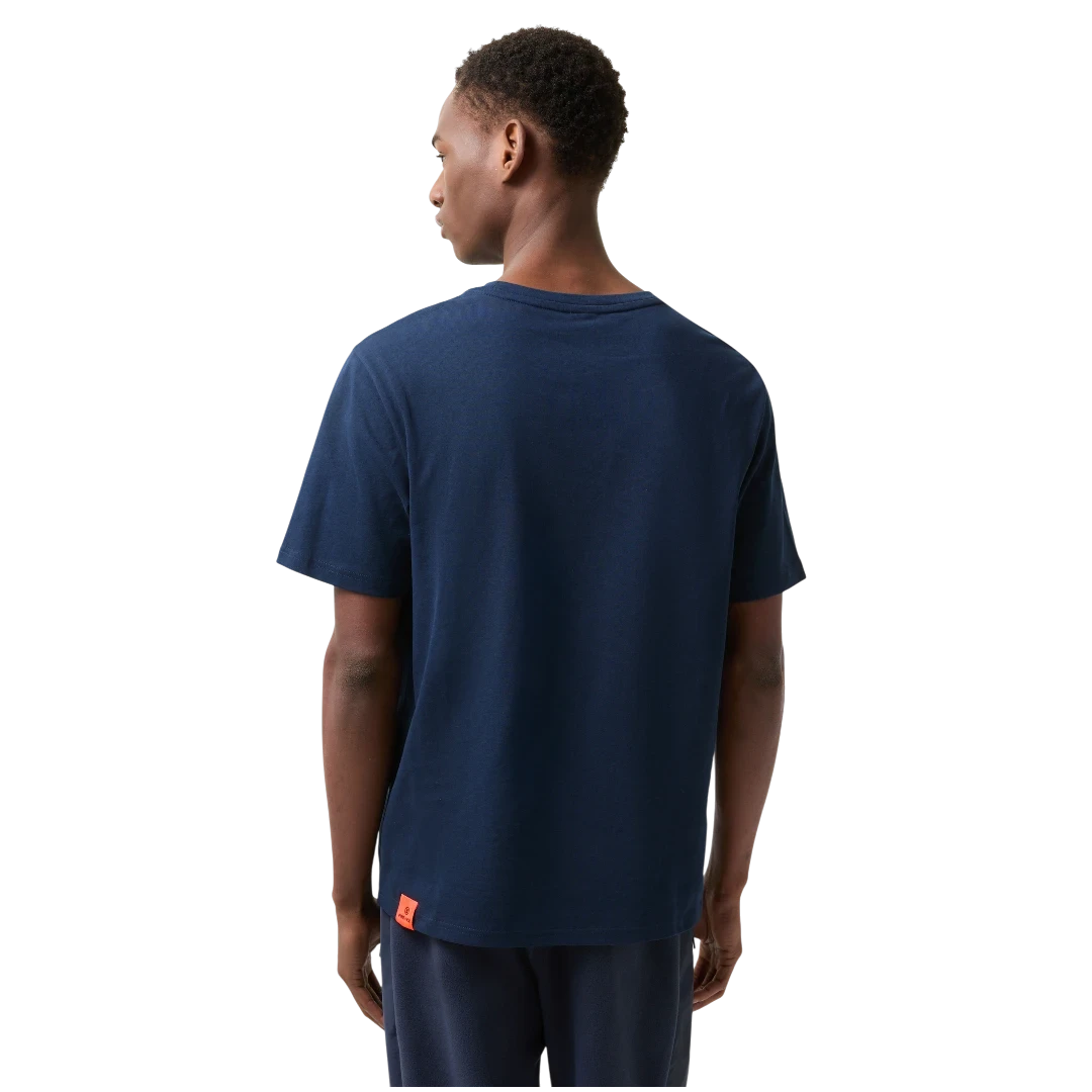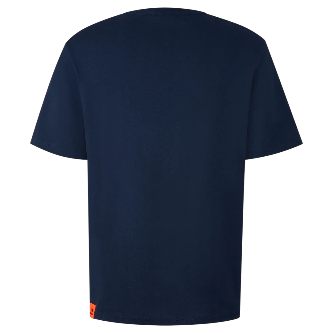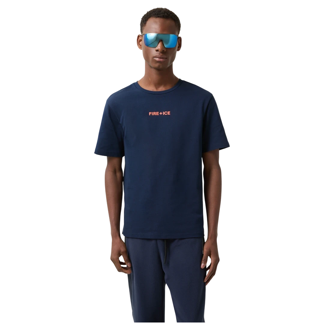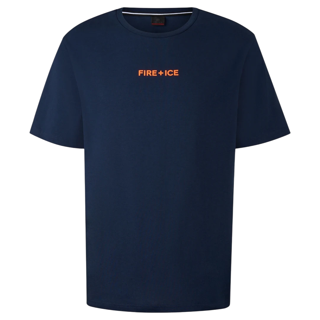 Tamno plava Bogner Fire+Ice majica odlikuje se čistim dizajnom i sportskom estetikom. Izrađena od visokokvalitetnog pamuka s dodatkom elastina, pruža maksimalnu udobnost i slobodu pokreta. Na prednjoj strani istaknut je narančasti FIRE+ICE logo, koji donosi moderan kontrast i prepoznatljiv izgled. Klasičan kroj i jednostavne linije čine je savršenim izborom za svakodnevne casual kombinacije — od sportskih outfita do urbanog streetwear stila.
