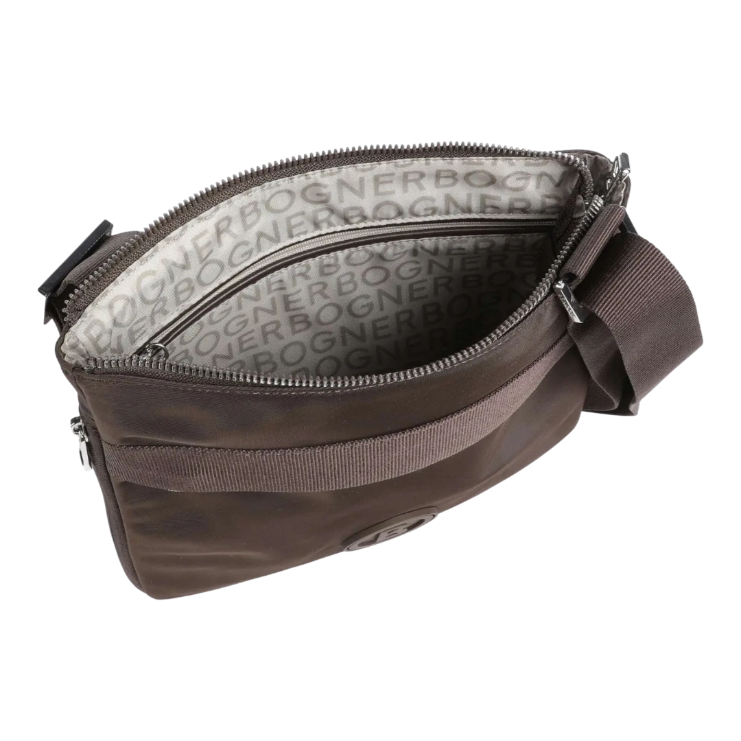 Bogner Maggia 1.0 Serena torba preko ramena u smeđoj boji izrađena je od kvalitetnog i izdržljivog najlonskog materijala, dizajnirana za moderne korisnike koji cijene praktičnost i stil. Torba ima prostor zatvaran patentnim zatvaračem, što osigurava sigurnost vaših stvari, kao i dodatan prednji džep sa zatvaračem i stražnji džep za lako pristupanje sitnicama. Unutrašnjost je opremljena jednim glavnim pretincem, jednim unutrašnjim džepom sa patentom i dva dodatna džepa za organizovan raspored sitnih predmeta. Podesivi remen omogućava udobno nošenje torbe preko ramena ili na križ, prilagođavajući se vašem stilu i potrebama. Ovaj model je kompaktan, lagan i idealan za svakodnevnu upotrebu, bilo da idete kroz grad ili putujete sa sobom.