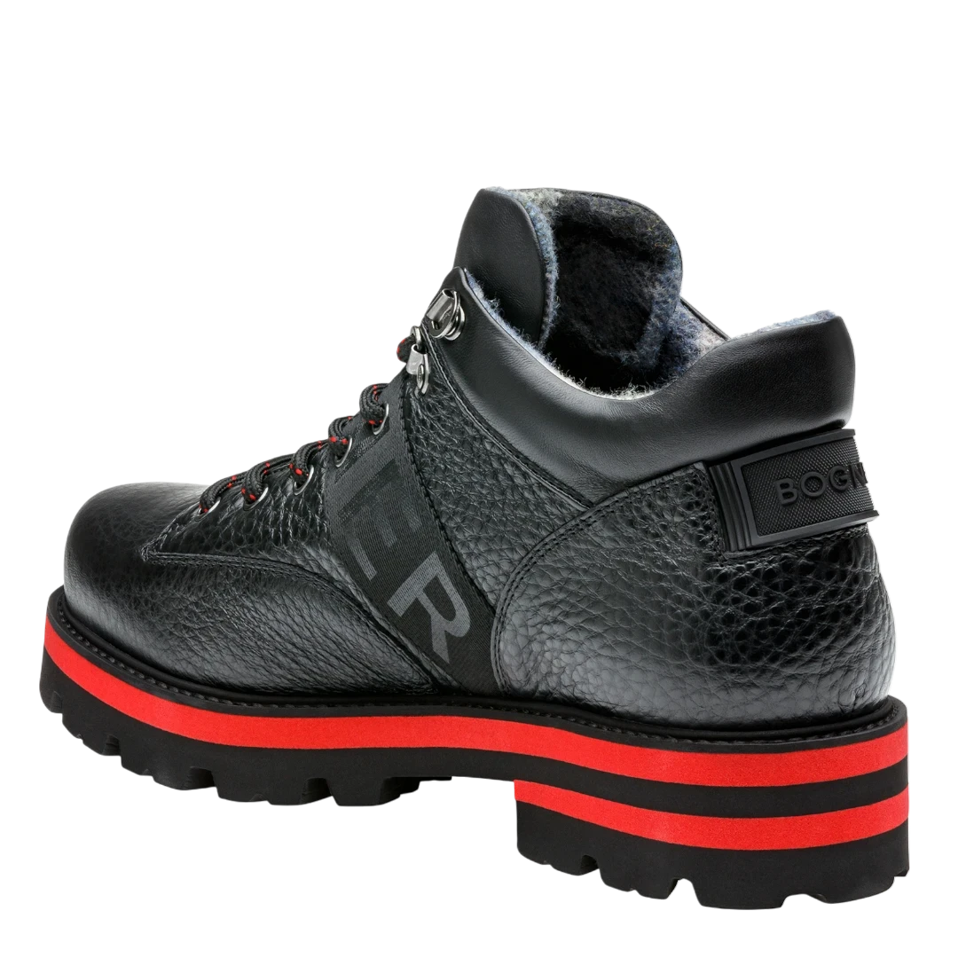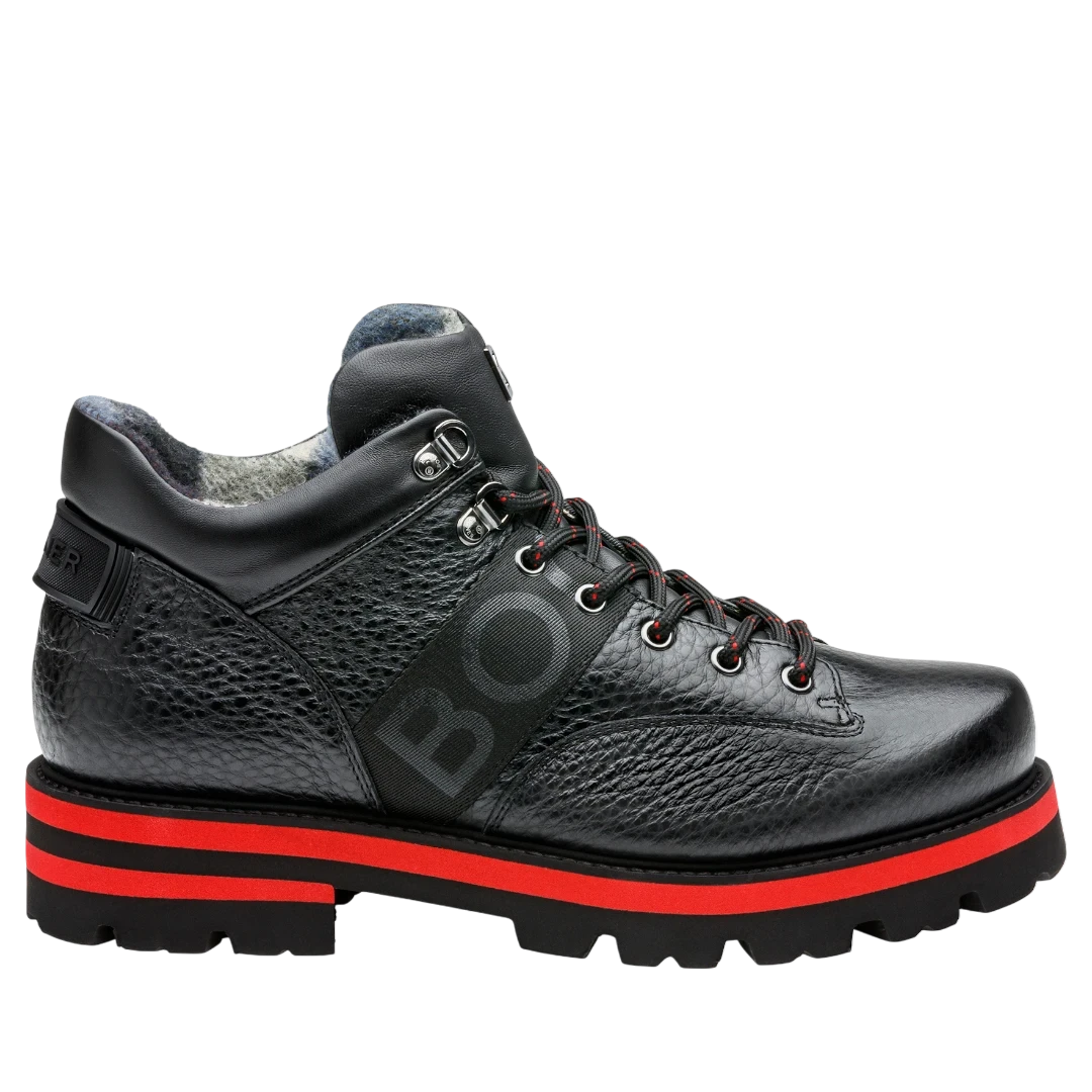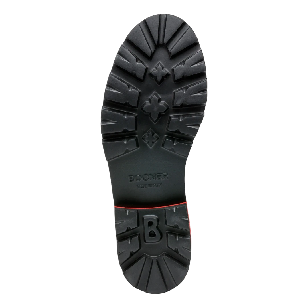 Ove Bogner muške gležnjače predstavljaju savršen spoj funkcionalnosti, luksuza i modernog dizajna. Izrađene od vrhunske kože zrnaste teksture, pružaju izdržljivost i prepoznatljiv izgled s naglašenim Bogner logom na bočnoj strani. Unutrašnjost je toplo postavljena, što osigurava udobnost i zaštitu od hladnoće tokom zimskih dana. Poseban vizualni akcenat daje dvobojni đon u crnoj i crvenoj nijansi, koji unosi sportski duh i dinamičan kontrast, dok robustan profil đona garantuje odlično prianjanje na svim terenima. Metalne kukice vezice dodatno naglašavaju planinarski karakter modela. Idealne su za muškarce koji traže kombinaciju stila, kvaliteta i praktičnosti – savršene i za urbane i za aktivne zimske avanture.