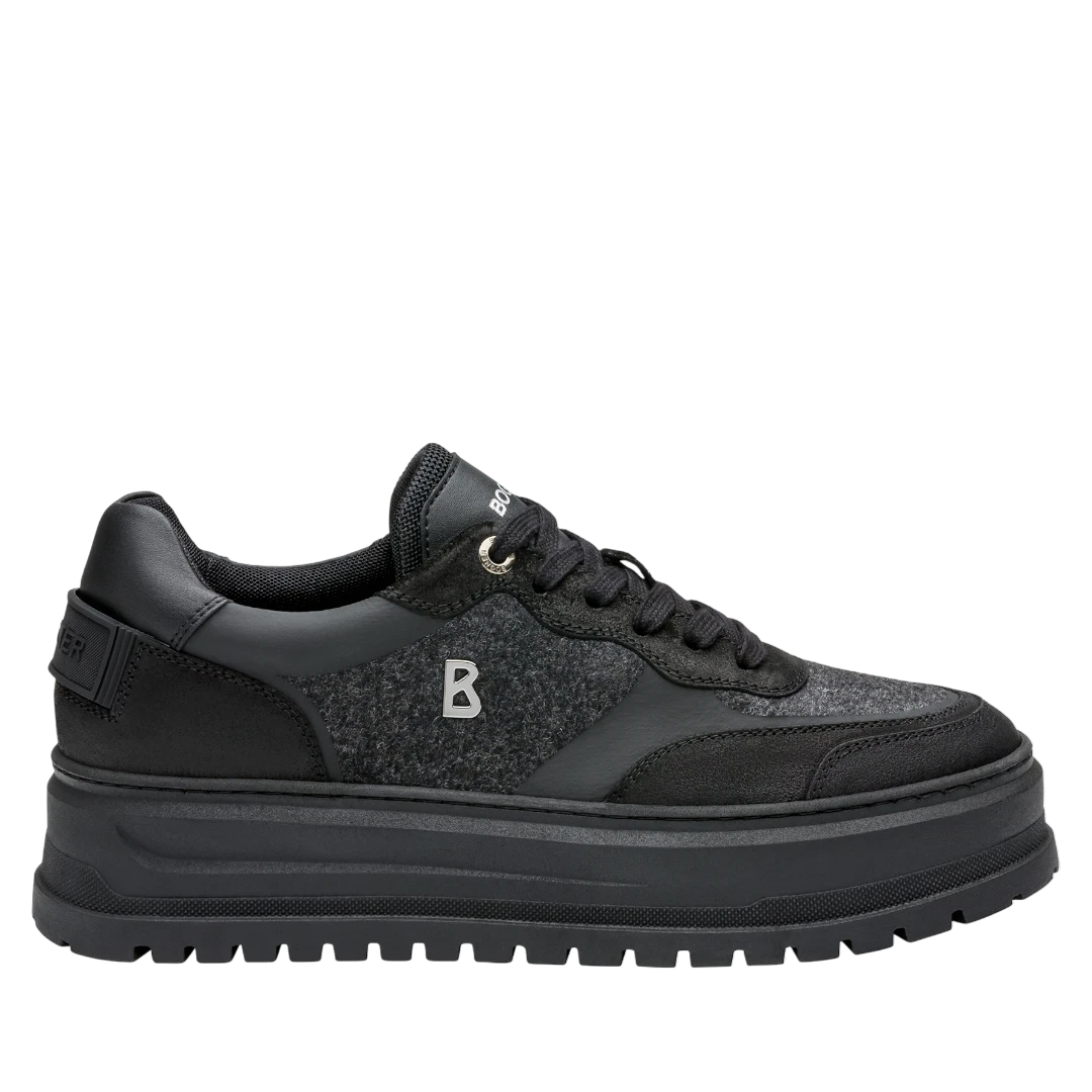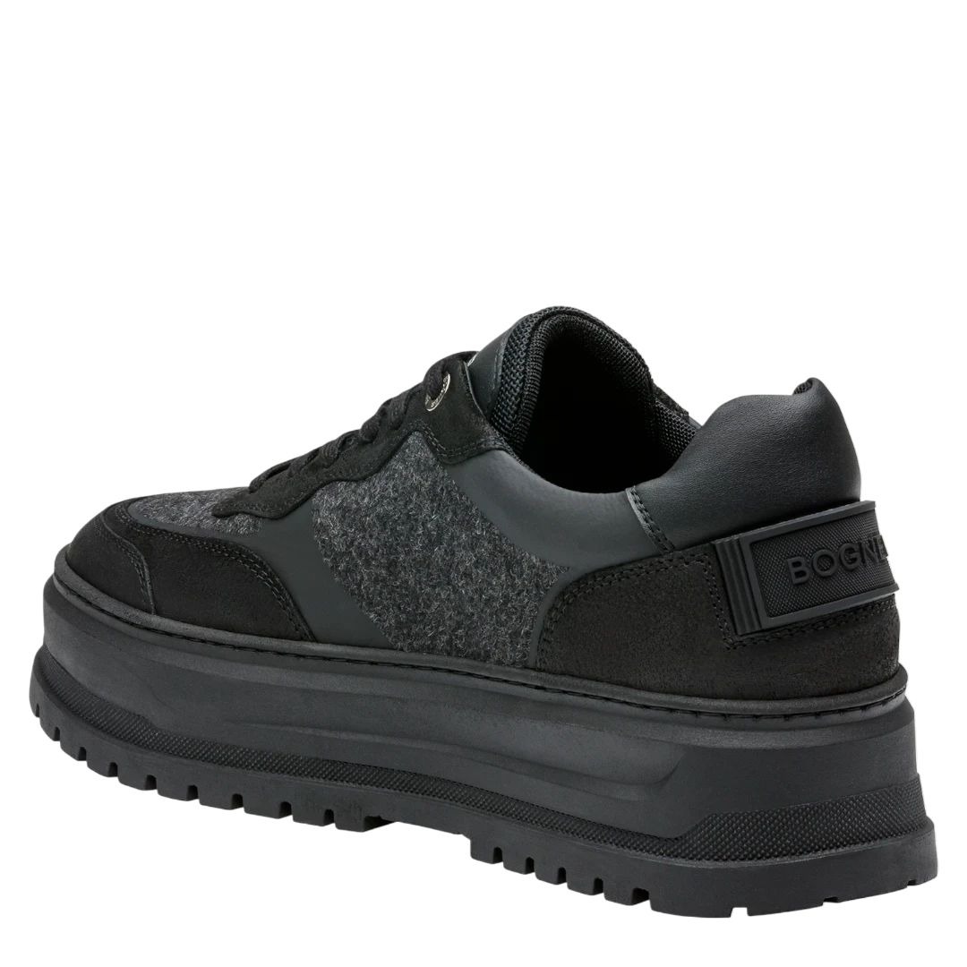 Ove Bogner muške patike u potpuno crnoj kombinaciji odišu elegantnim minimalizmom i luksuznom sportskom estetikom. Izrađene od kombinacije kože, filcanog tekstila i antilopa, pružaju vrhunsku udobnost, otpornost i sofisticiran izgled. Diskretni metalni “B” logo na bočnoj strani i reljefni Bogner detalj na peti naglašavaju prepoznatljiv identitet brenda. Povišeni gumeni đon osigurava stabilnost i dodatnu udobnost, dok unutrašnjost obložena mekim materijalom pruža prijatan osjećaj tokom nošenja. Savršene za muškarce koji preferiraju moderan, monohromatski stil i žele da spoje eleganciju i udobnost u svakoj prilici — od casual kombinacija do urbanih zimskih outfita.