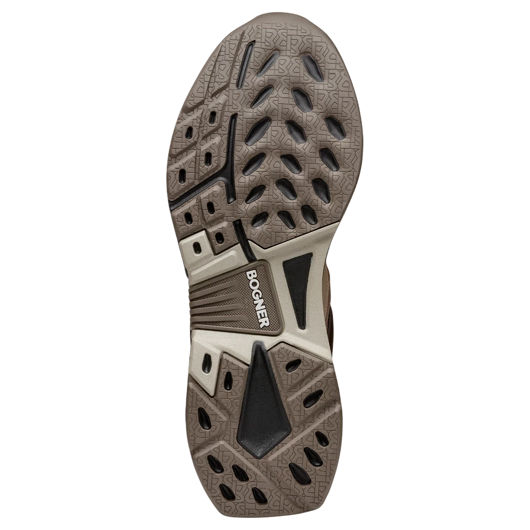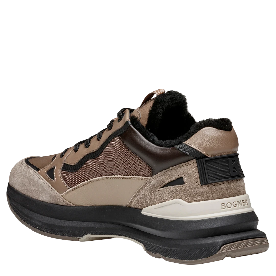 Ove Bogner muške patike u tonovima bež, smeđe i crne boje donose savršen balans između luksuznog dizajna i sportskog performansa. Izrađene od kombinacije kože, antilopa i mrežastih tehničkih materijala, nude vrhunsku udobnost, prozračnost i prepoznatljiv Bogner izgled. Reljefni “B” logo na bočnoj strani naglašava dinamičan dizajn, dok unutrašnjost obložena toplim krznom osigurava udobnost i zaštitu tokom hladnijih dana. Masivan potplat s višeslojnom strukturom pruža izvanrednu stabilnost i amortizaciju, čineći ih idealnim za svakodnevno nošenje. Ove patike su izbor za muškarce koji žele kombinaciju modernog urbanog stila, luksuzne estetike i funkcionalne udobnosti u zimskim mjesecima.