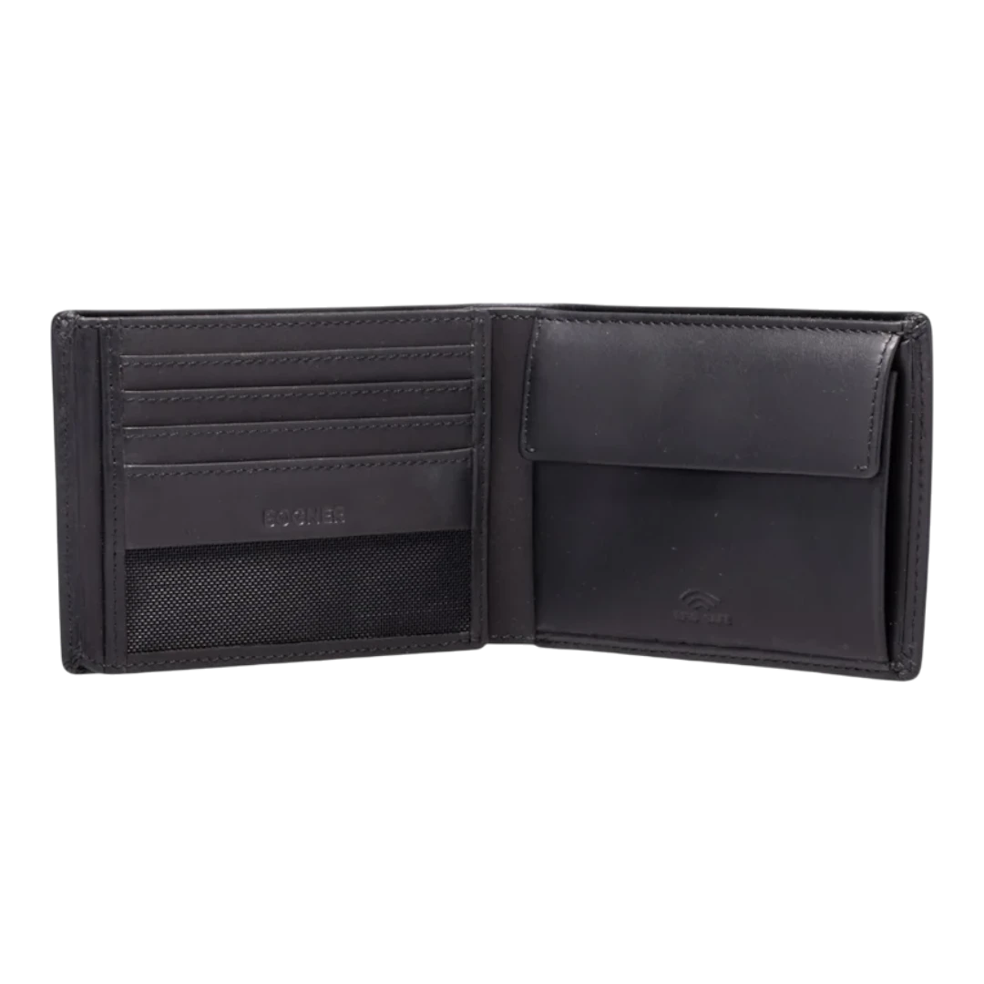 Muški novčanik premium kvaliteta u elegantnoj crnoj boji, izrađen od visokokvalitetne goveđe kože koja je izdržljiva i lijepo stari. Dizajniran je u klasičnom billfold (na preklop) stilu koji je praktičan za svakodnevnu upotrebu. Unutrašnjost je pažljivo organizovana i nudi više odjeljaka – uključujući prostore za papirni novac, više prekida za kreditne i druge kartice, te poseban džep za sitni novac sa kopčom. Novčanik ima RFID zaštitu koja pomaže u sprečavanju neovlaštenog očitavanja kartica, što ga čini sigurnim izborom za moderne korisnike. Kombinacija sofisticiranog dizajna i funkcionalnosti čini ovaj novčanik odličnim modnim dodatkom za svakog muškarca koji cijeni kvalitet i organizaciju.