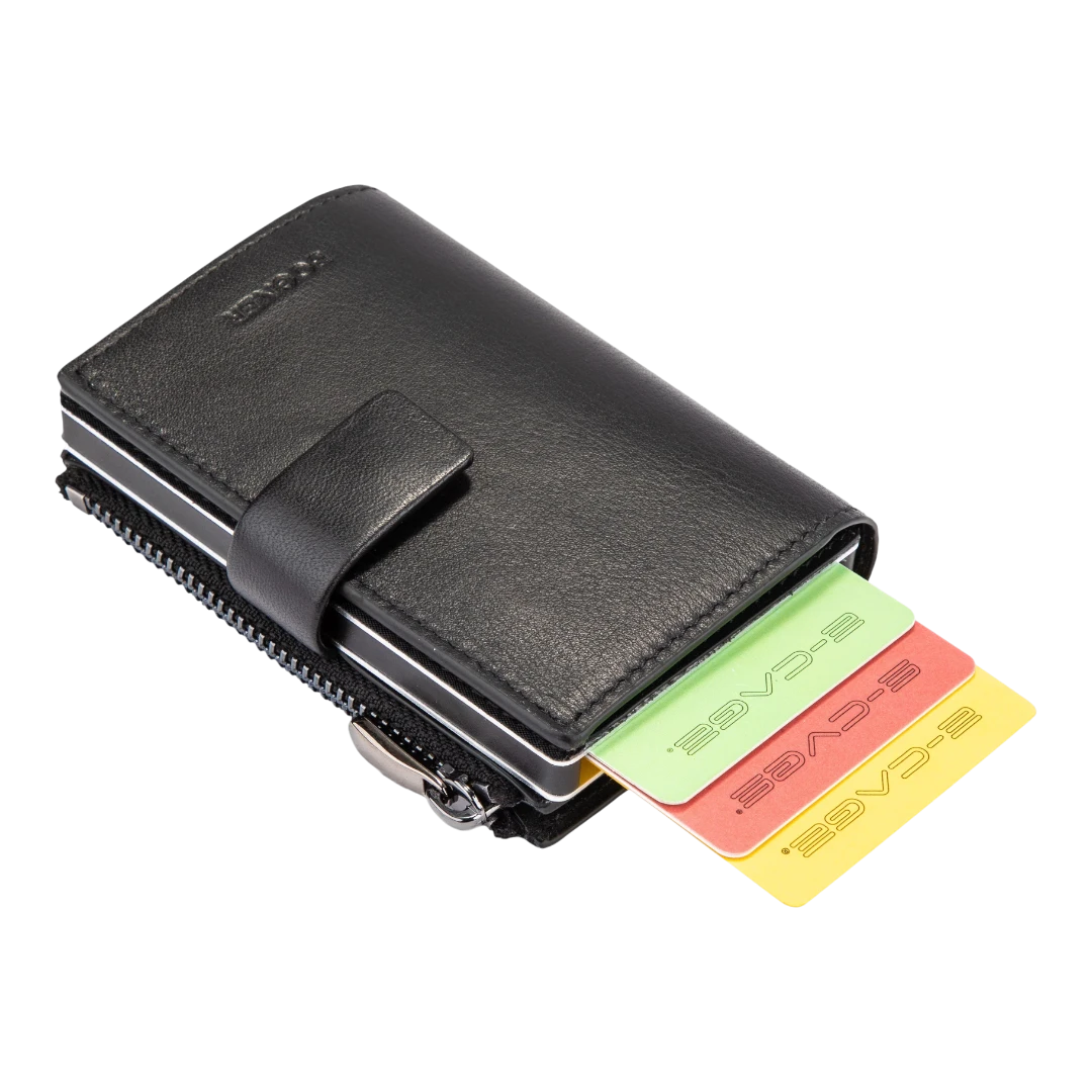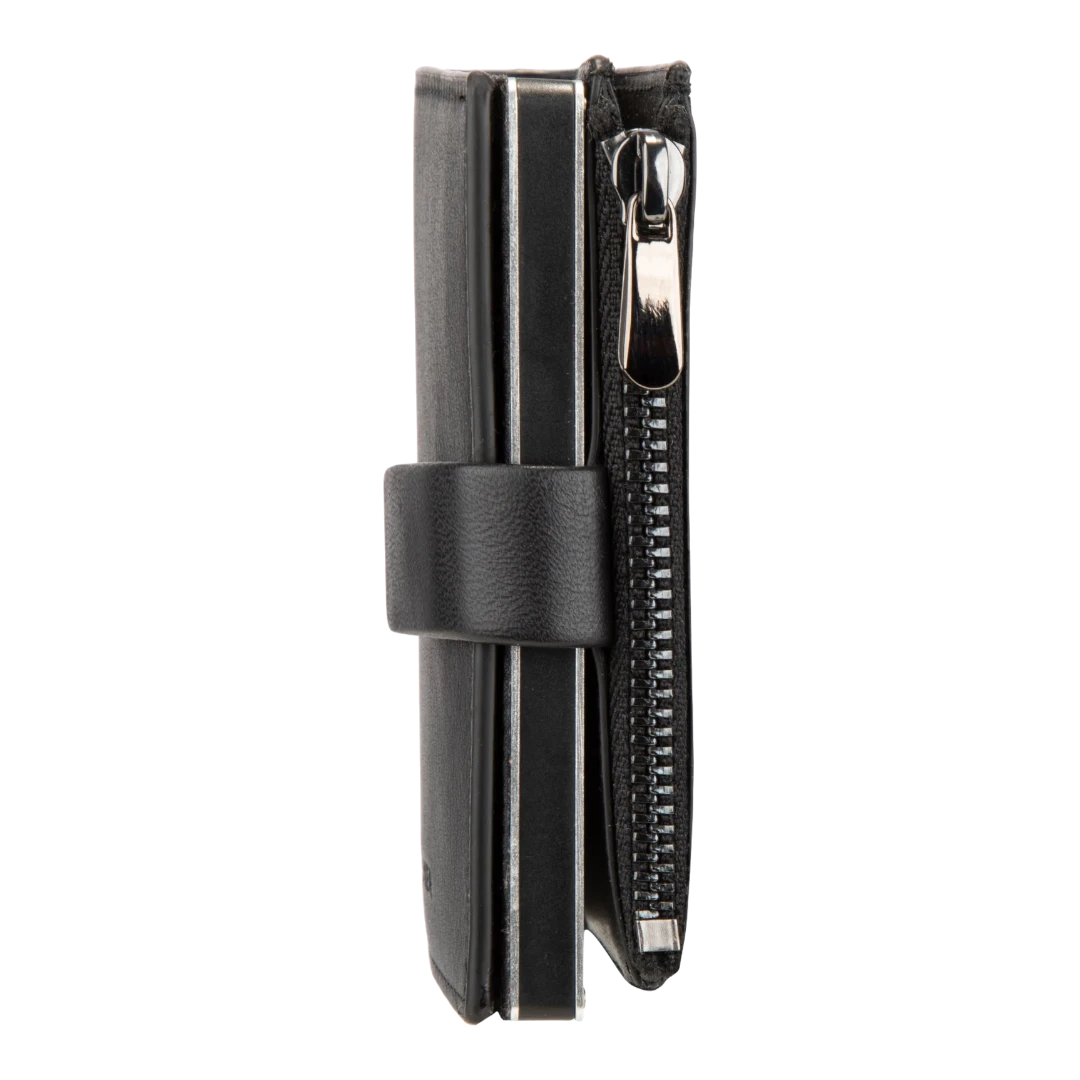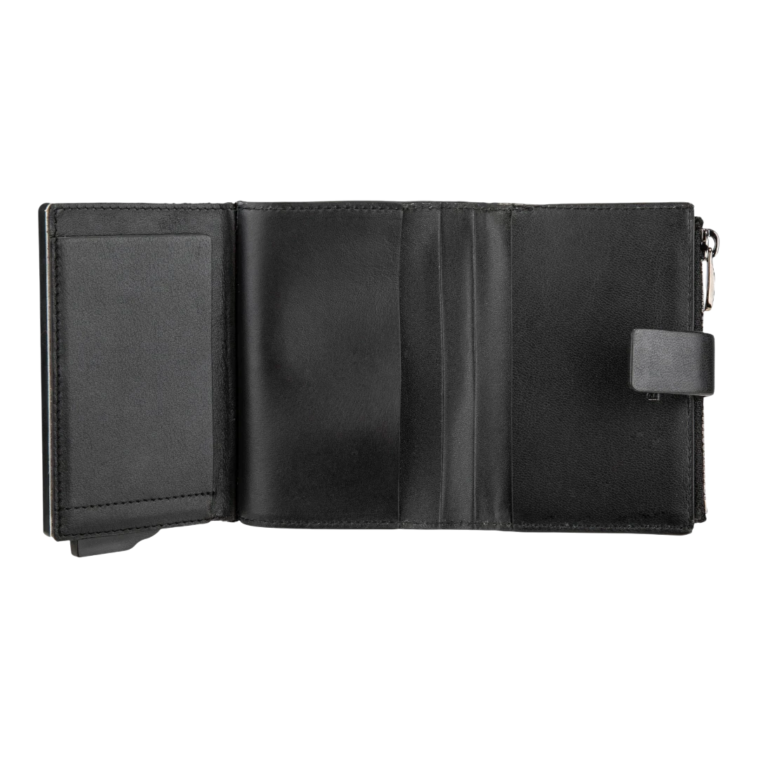 Novčanik je dizajniran za jednostavnu i brzu organizaciju kartica, s praktičnim mehanizmom za izvlačenje koji omogućava lak pristup. Zatvaranje na kopču osigurava sigurnost sadržaja, dok tanak i moderan profil omogućava udobno nošenje u džepu.
