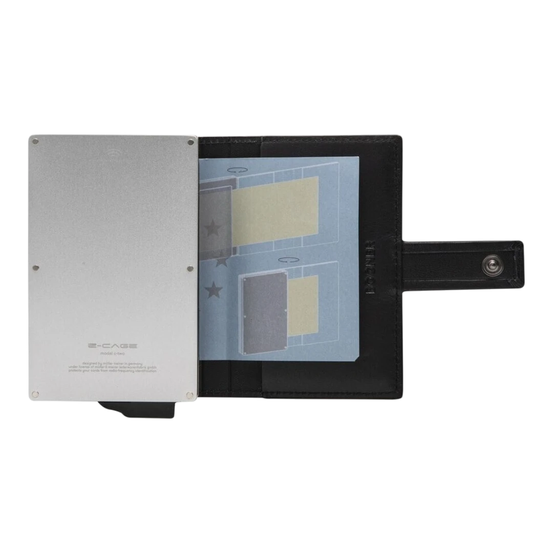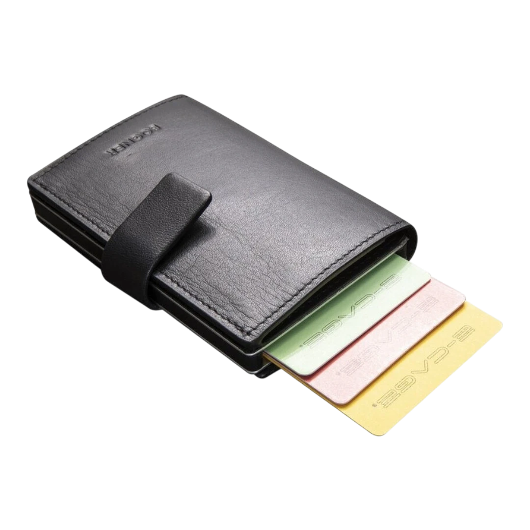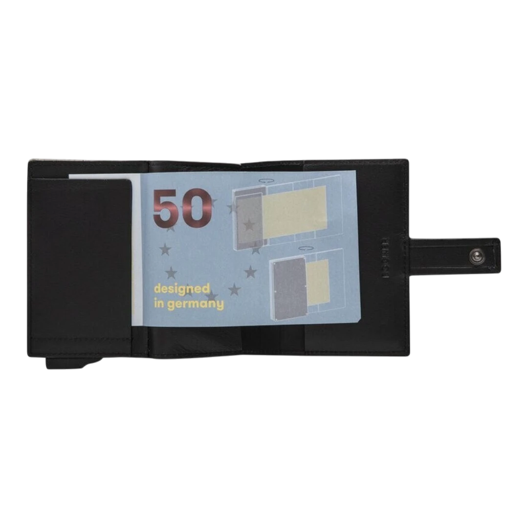Novčanik je dizajniran za jednostavnu i brzu organizaciju kartica, s praktičnim mehanizmom za izvlačenje koji omogućava lak pristup. Zatvaranje na kopču osigurava sigurnost sadržaja, dok tanak i moderan profil omogućava udobno nošenje u džepu.