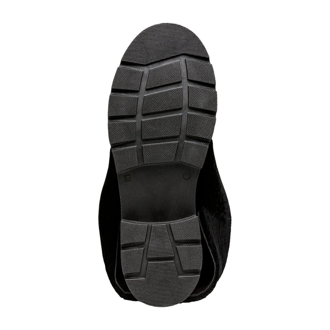 Ove Bogner ženske čizme u crnoj boji predstavljaju savršen spoj luksuza, topline i minimalističke elegancije. Izrađene od mekanog krzna s kožnim detaljem na vrhu i prepoznatljivim metalnim “B” logom, odišu sofisticiranošću i prefinjenim zimskim stilom. Unutrašnjost bogato postavljena krznom pruža izuzetnu toplinu i udobnost, dok robustan gumeni đon s reljefnim uzorkom osigurava stabilnost i dobro prianjanje u svim vremenskim uslovima. Ove čizme su idealan izbor za žene koje žele da spoje moderan izgled s funkcionalnošću i uživaju u maksimalnoj udobnosti tokom hladnih zimskih dana.