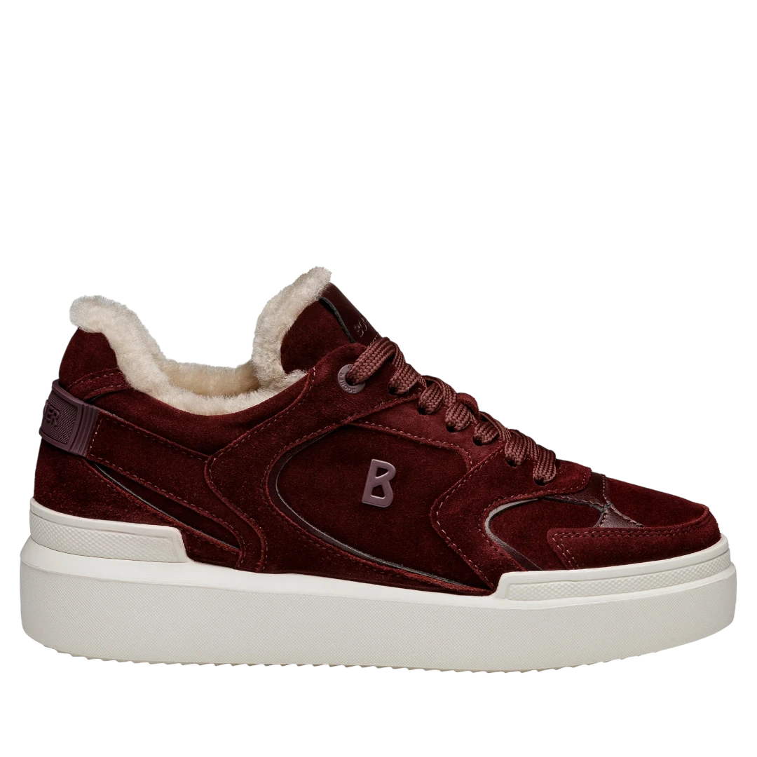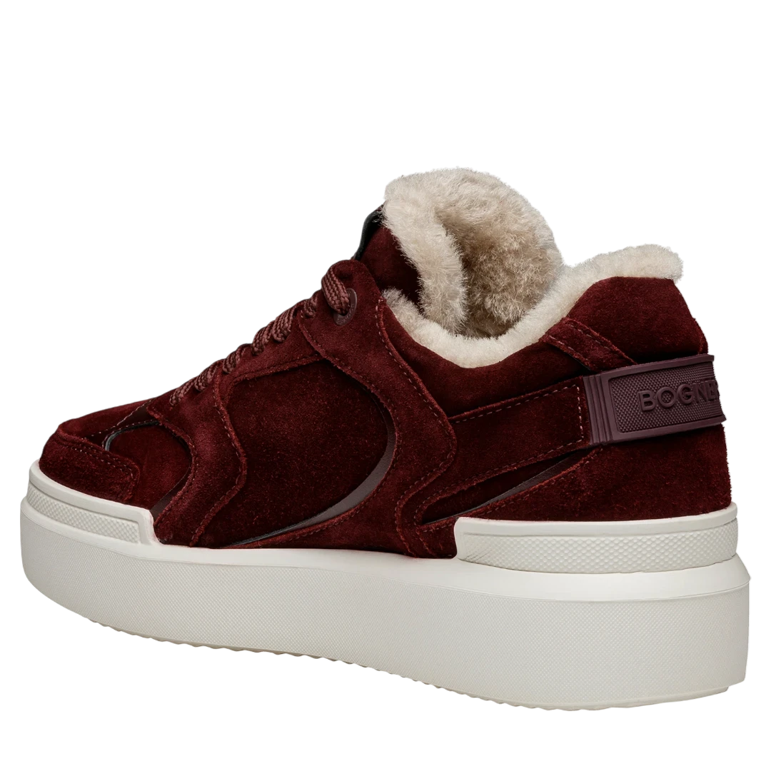 Ove Bogner ženske patike u elegantnoj bordo nijansi donose savršen spoj sportskog stila i luksuzne udobnosti. Izrađene od mekanog antilopa s diskretnim kožnim detaljima, pružaju sofisticiran izgled uz moderan dizajn. Unutrašnjost je obložena toplom shearling postavom, koja osigurava izuzetnu udobnost i toplotu tokom hladnijih dana. Na bočnoj strani nalazi se prepoznatljivo metalno “B” Bogner obilježje, dok povišeni gumeni đon u svijetloj nijansi pruža stabilnost i savršenu ravnotežu između urbanog i casual stila. Idealne su za žene koje žele zadržati eleganciju i tokom opuštenih zimskih kombinacija.