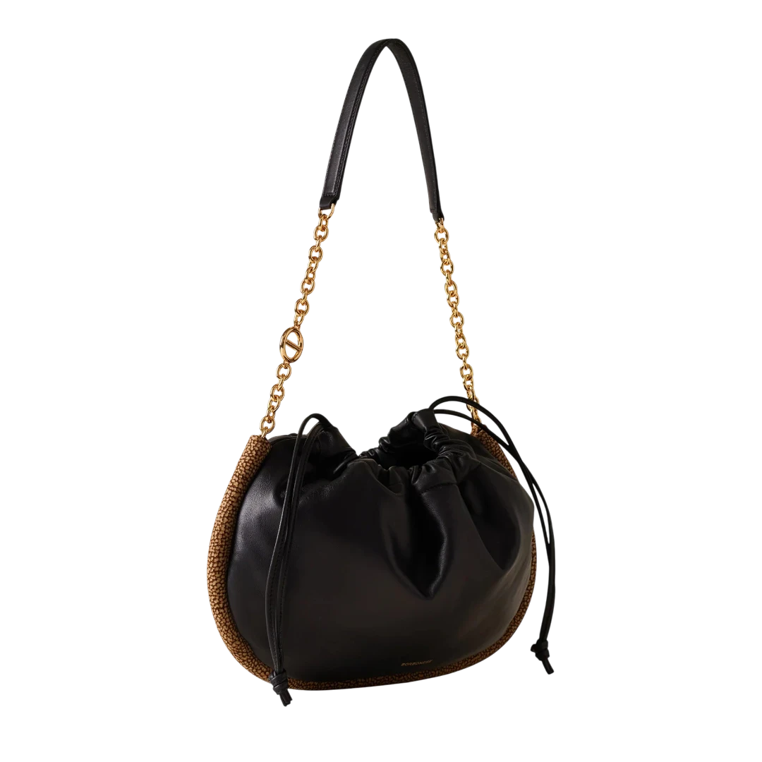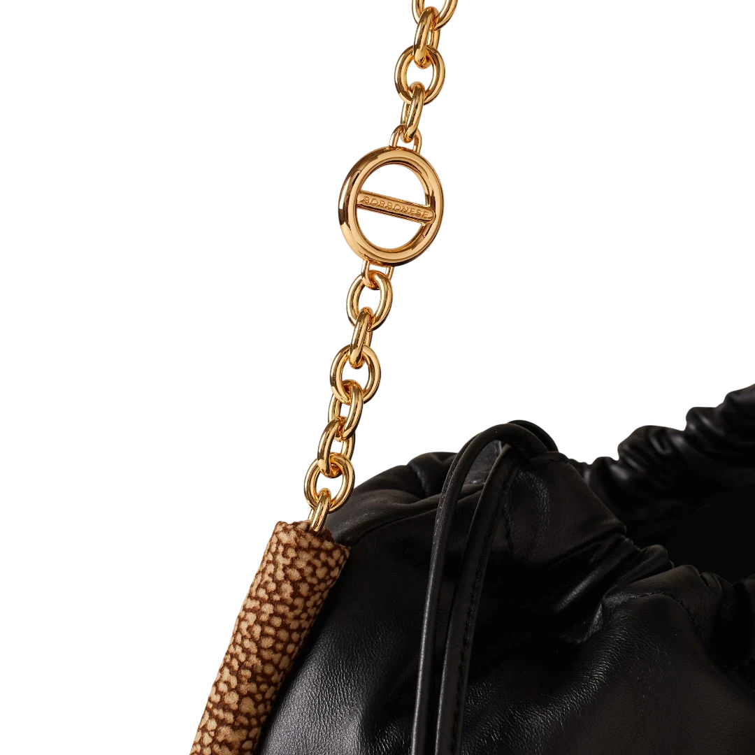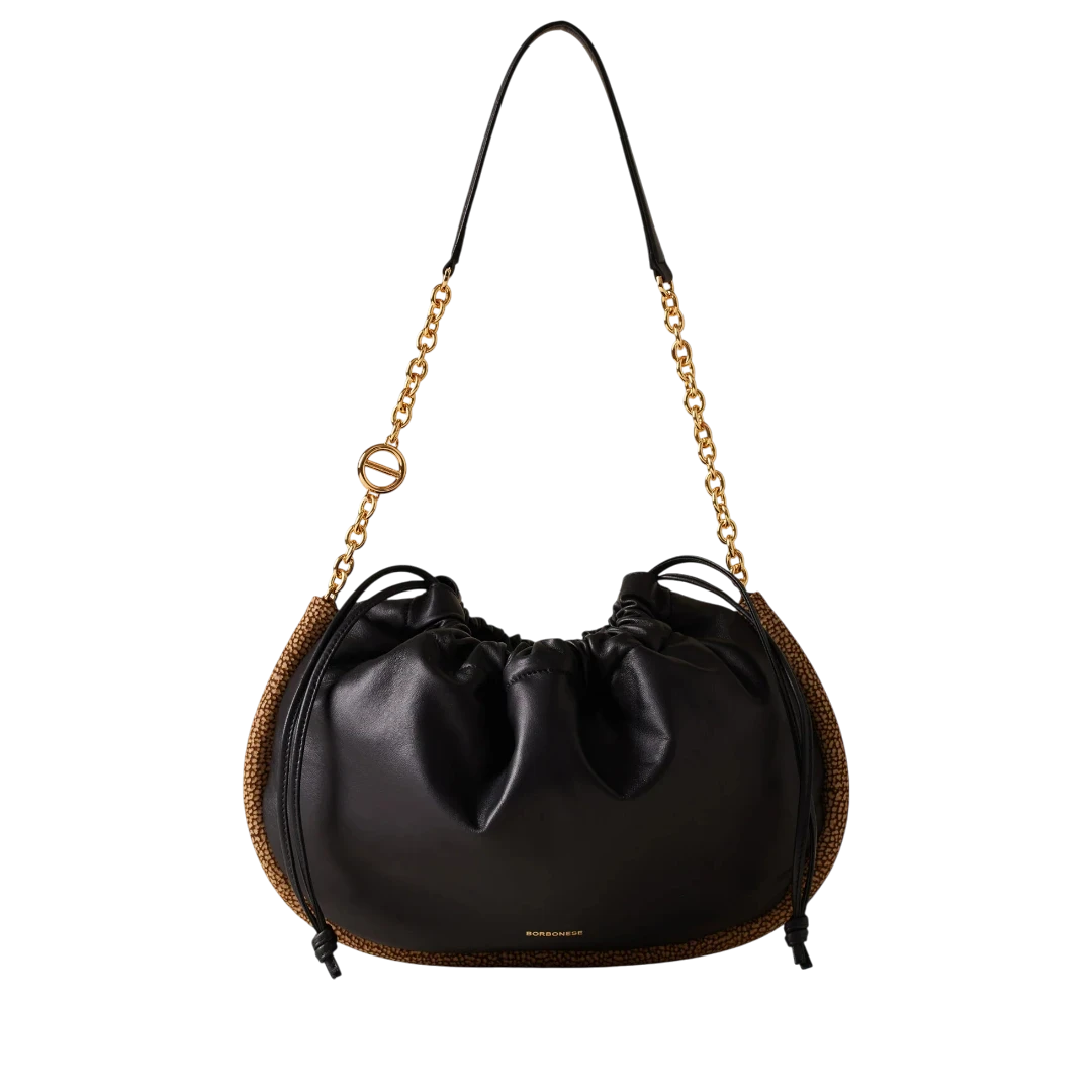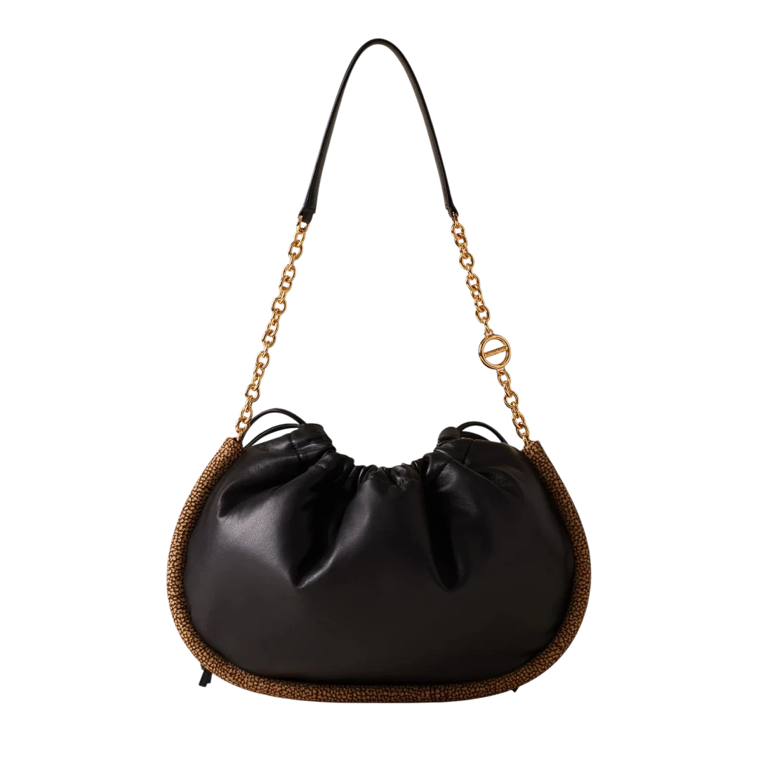 Suptilna, elegantna i prepoznatljivo luksuzna — Borbonese torba spaja mekane linije i savršenu izradu u jedinstven modni dodatak. Izrađena od glatke kože, s bočnim detaljima u kultnom O.P. (Occhio di Pernice) uzorku, ova torba simbolizira autentičan italijanski dizajn i rafiniran ukus. Zlatni lanac i kožna ručka donose sofisticiran kontrast, dok zatvaranje na zatezanje otkriva modernu, ali praktičnu siluetu. Idealna je za žene koje biraju diskretan luksuz i komade koji traju – torba koja podjednako dobro pristaje dnevnim i večernjim kombinacijama.