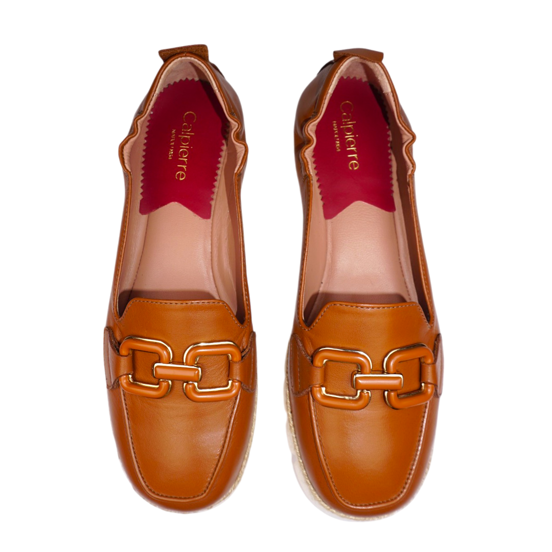 Ženske kožne cipele Calpierre u smeđoj boji donose savršen spoj elegancije, udobnosti i prepoznatljivog stila. Izrađene od mekane, visokokvalitetne kože, ove cipele pružaju izuzetnu lakoću i prijatan osjećaj pri svakom koraku, čineći ih idealnim izborom za svakodnevno nošenje. Poseban akcenat stavljen je na karakterističan đon koji nudi stabilnost i modernu siluetu, dok ukrasni detalji sprijeda dodaju dodatnu dozu luksuza i sofisticiranosti. Smeđa boja ih čini svestranim komadom koji se lako uklapa u svaki outfit – od ležernih kombinacija do poslovnog stila.