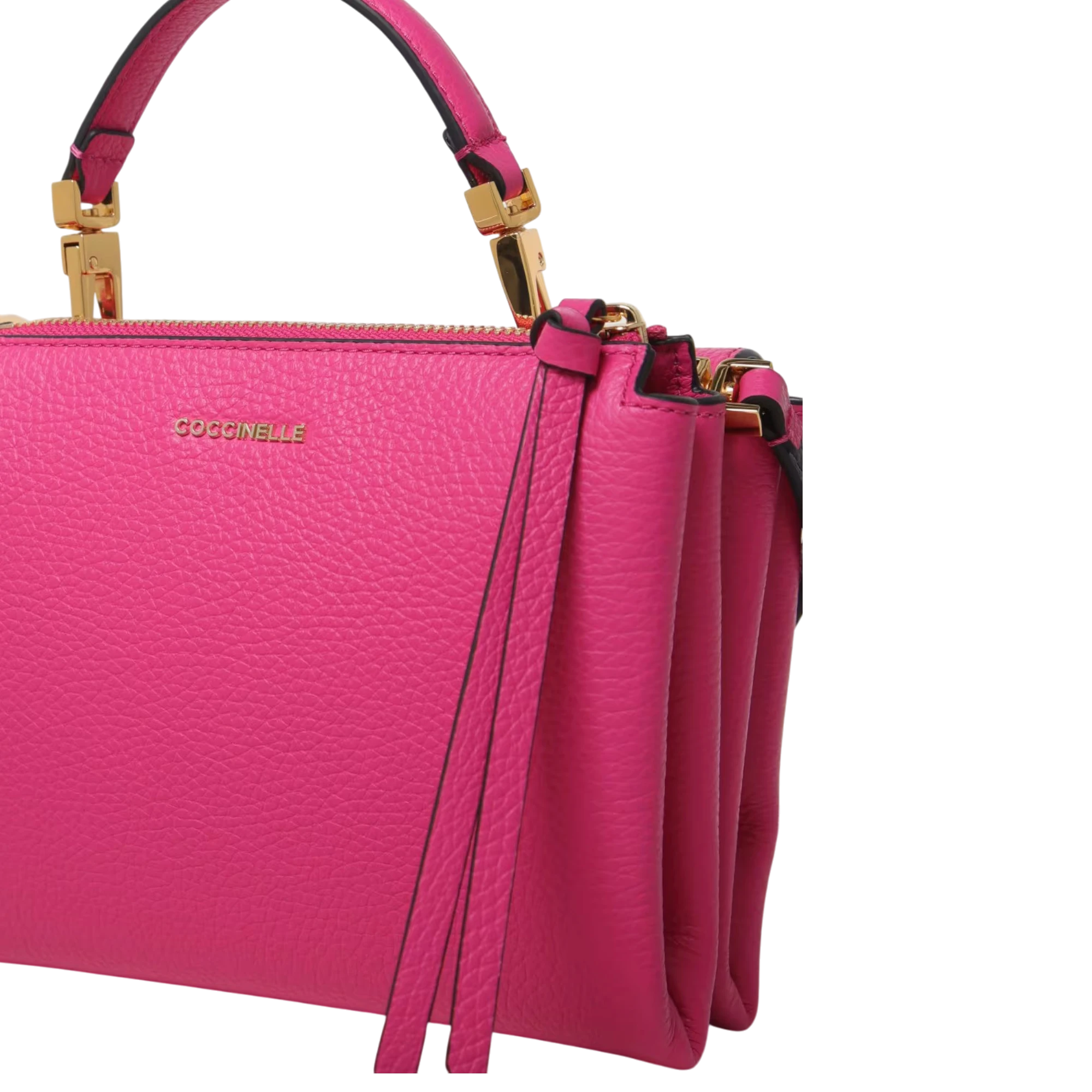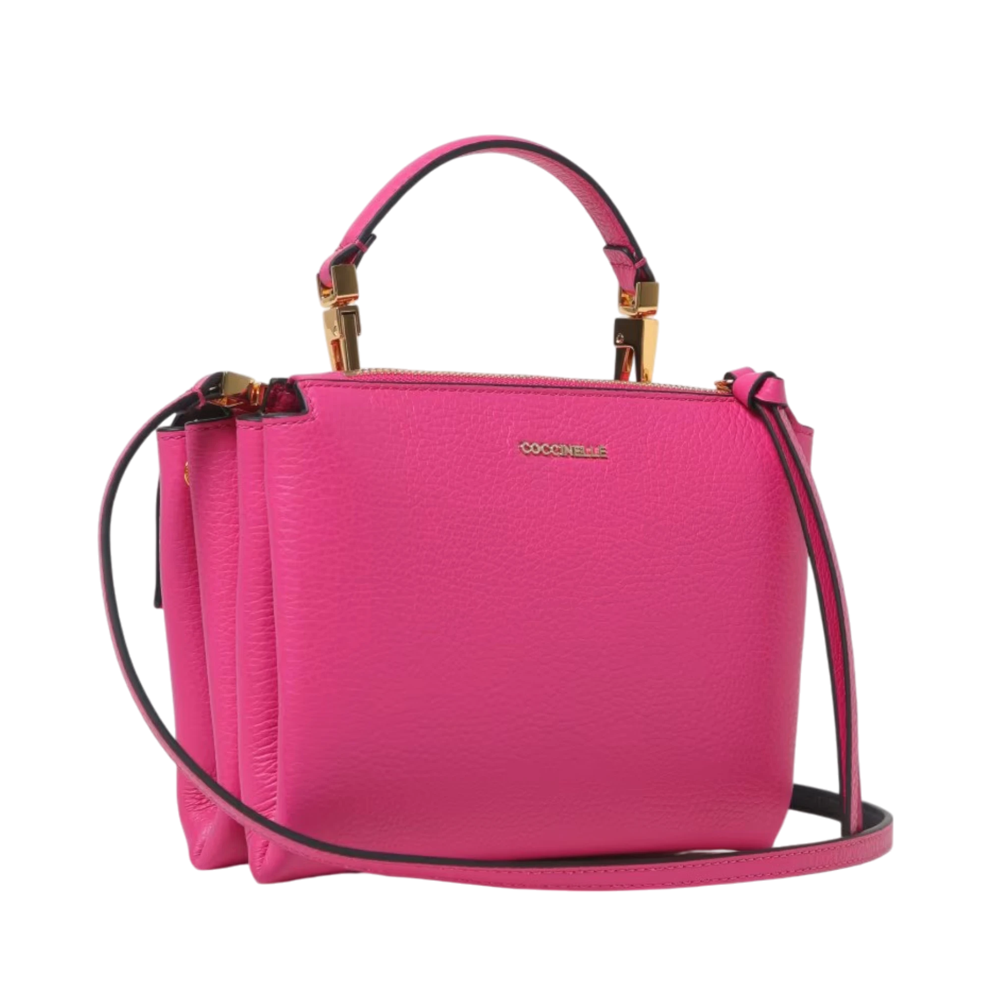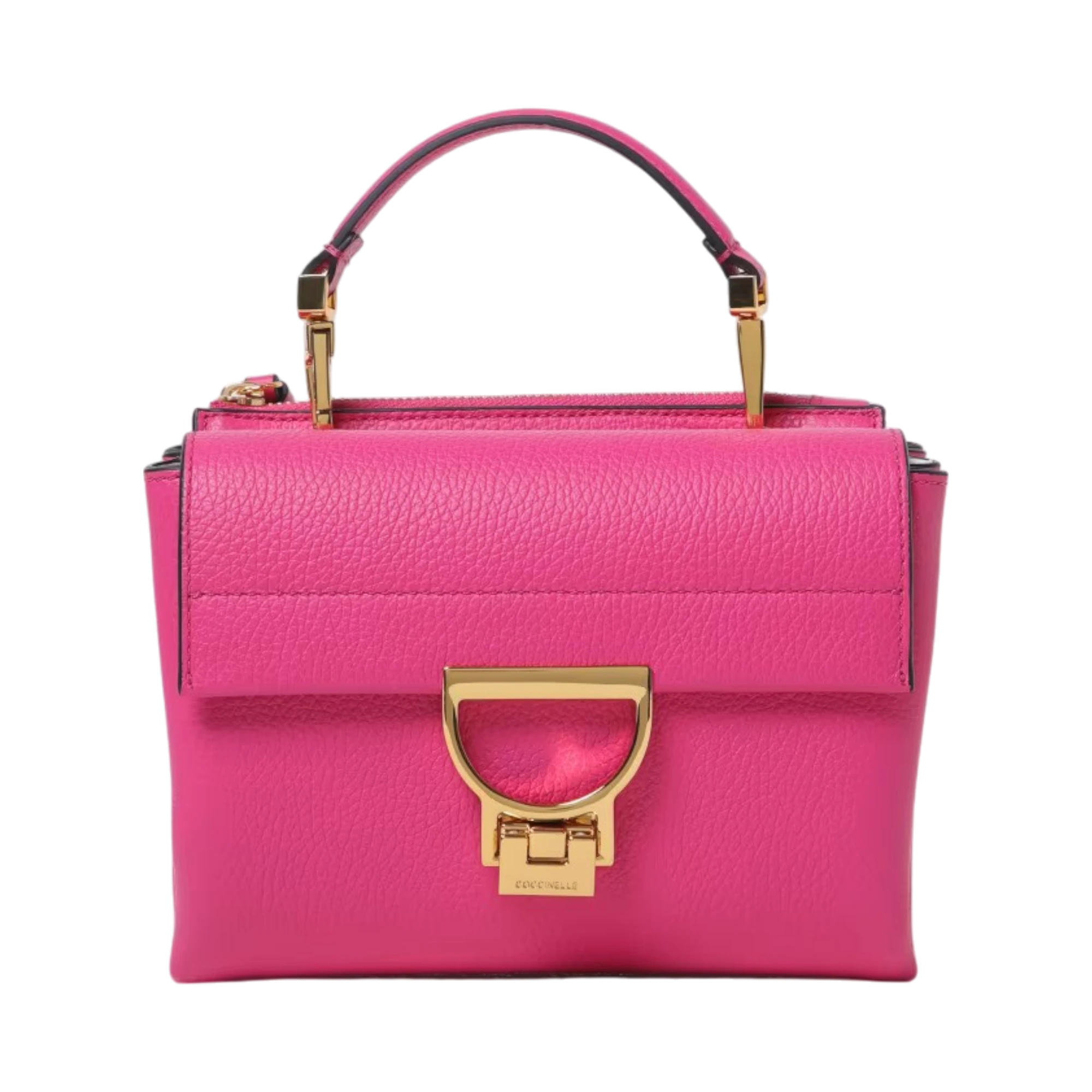 Coccinelle Arlettis torba u rozoj nijansi predstavlja savršen spoj elegancije i funkcionalnosti. Izrađena od kvalitetne zrnaste kože, ovaj model ističe se prepoznatljivom metalnom kopčom na prednjem preklopu, dok praktični raspored unutrašnjosti uključuje dva odvojena pretinca – zadnji s patentnim zatvaranjem i prednji ispod klapne. Zahvaljujući odvojivoj ručki i podesivom kaišu, torbu možete nositi u ruci, preko ramena ili kao crossbody. Dimenzije 19x15x8 cm čine je idealnom za svakodnevne aktivnosti, a lagana konstrukcija od 480 g osigurava udobnost u nošenju.