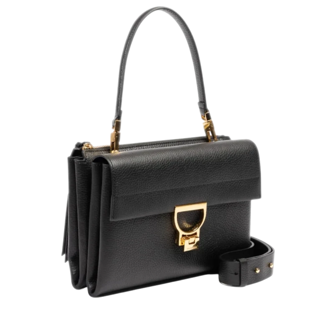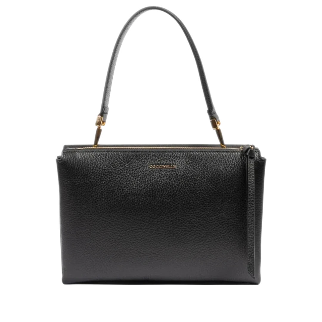 Coccinelle torba u crnoj boji predstavlja vrhunac bezvremenske elegancije i sofisticiranosti. Izrađena od kvalitetne, prirodne kože s izraženom teksturom, ova torba odiše luksuzom, dok prepoznatljiva zlatna metalna kopča daje upečatljiv i moderan akcenat. Kompaktan, ali funkcionalan format čini je idealnim izborom za večernje izlaske, posebne prilike ili profinjene dnevne kombinacije. Kratka ručka omogućava nošenje u ruci ili na podlaktici, dok njen minimalistički dizajn garantuje lako uklapanje uz svaki stil. Savršena torba za žene koje cijene klasiku s dozom luksuza.