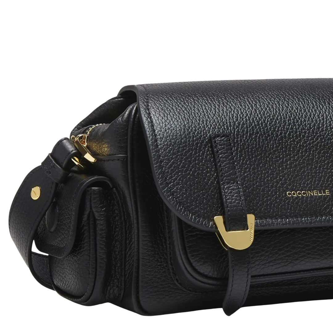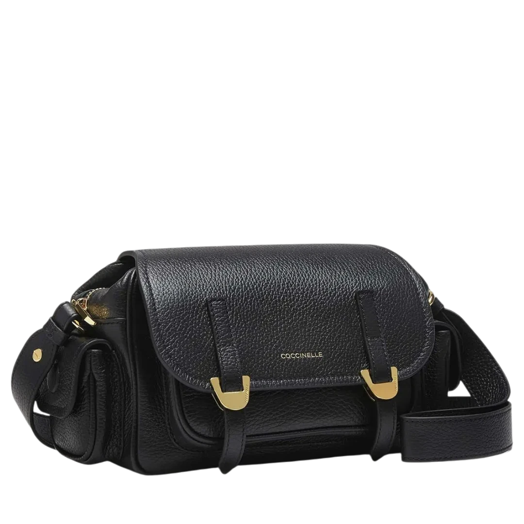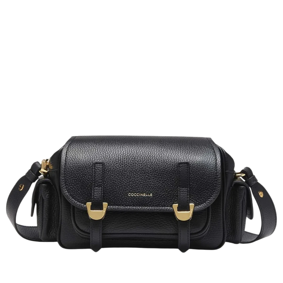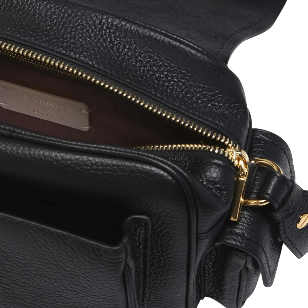 Coccinelle crossbody torba u crnoj boji spaja funkcionalnost i moderan dizajn. Izrađena od fine granulirane kože, torba ima strukturiran oblik sa prepoznatljivim preklopom i dvostrukim zlatnim kopčama koje joj daju profinjenu notu. Praktični bočni džepovi i podesivi kožni kaiš osiguravaju udobnost i organizovanost, dok kompaktnost modela čini da se savršeno uklapa u svakodnevne kombinacije. Idealna je za žene koje traže praktičnu torbu, ali ne žele da odustanu od elegancije i luksuznog stila.