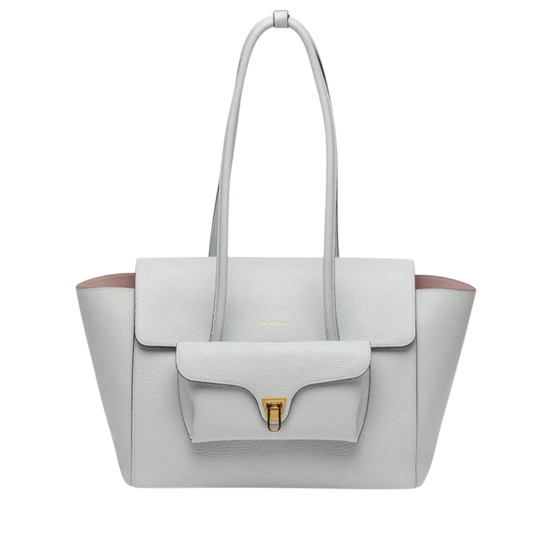 Ova Coccinelle torba predstavlja savršen spoj elegancije, funkcionalnosti i luksuza u prepoznatljivom italijanskom stilu. Izrađena od kvalitetne zrnaste kože u profinjenoj svijetlosivoj nijansi, odlikuje se struktuiranom siluetom i besprijekornom izradom koja odiše sofisticiranošću. Prednji džep s ikoničnim metalnim kopčanjem u zlatnom tonu donosi prepoznatljiv Coccinelle pečat, dok prostrana unutrašnjost i duže ručke čine torbu idealnom za svakodnevnu upotrebu – od poslovnog dana do elegantnog izlaska. Ovaj model spaja bezvremenski dizajn i praktičnost, stvarajući torbu koja istovremeno odiše profinjenošću i samopouzdanjem – pravi izbor za ženu sa stilom.