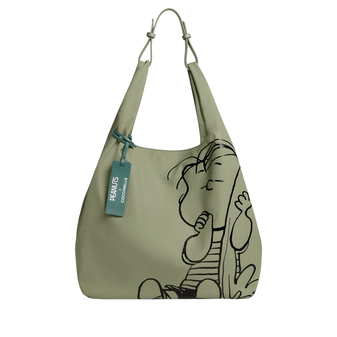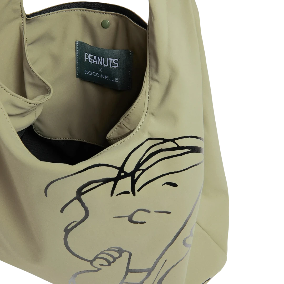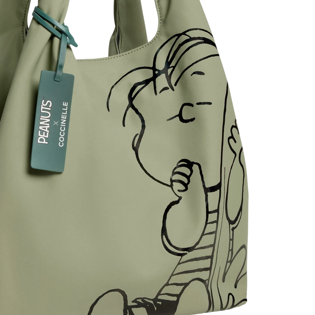 Ova Coccinelle x Peanuts torba predstavlja savršen spoj italijanske elegancije i bezbrižnog duha Peanuts likova. Nastala povodom 75. godišnjice kultnog stripa, torba donosi jedinstveni dizajn s likom Linusa koji unosi dozu topline i vedrine u prepoznatljivu Coccinelle estetiku. Izrađena od recikliranih, vodootpornih materijala, torba je lagana, praktična i idealna za svakodnevnu upotrebu. Prostran oblik i meka struktura osiguravaju udobnost, dok kontrastni tag u zelenoj nijansi naglašava održivi karakter kolekcije. Savršena kombinacija funkcionalnosti, održivosti i neodoljivog talijanskog šarma.