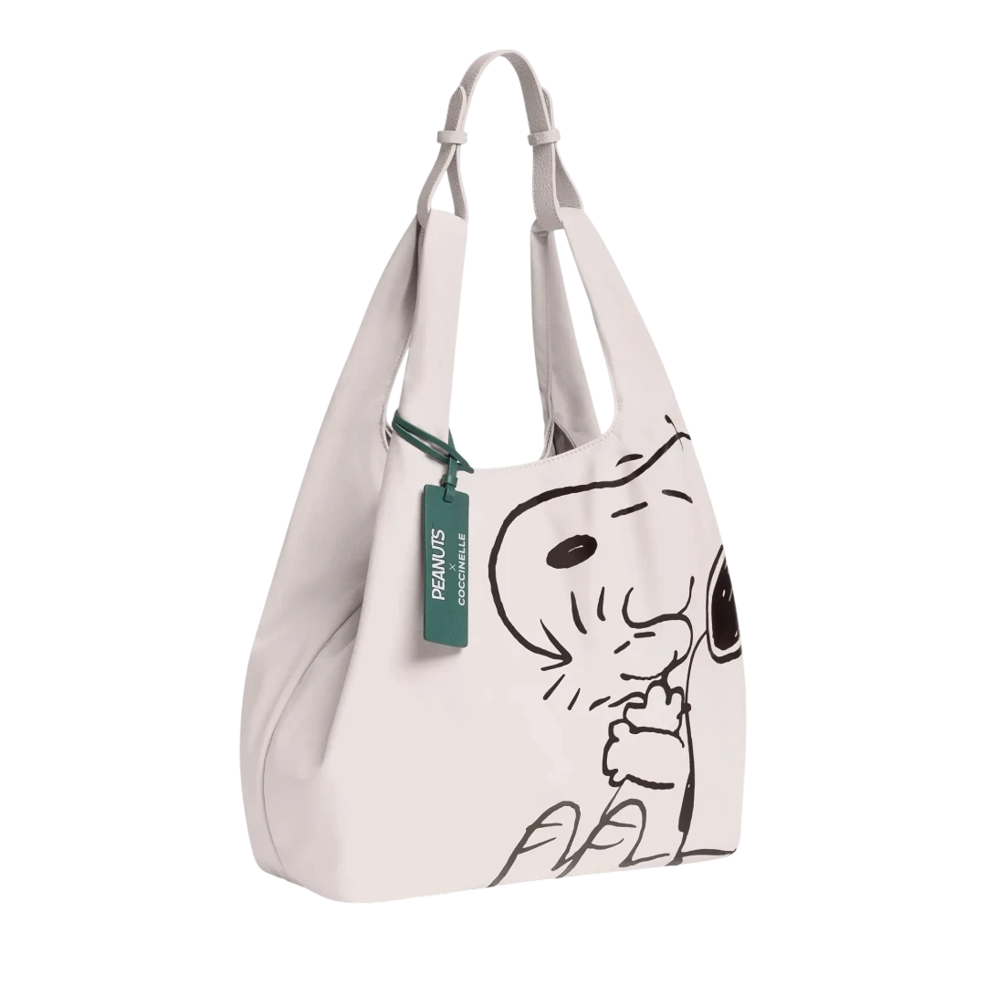 Ova Coccinelle x Peanuts torba slavi spoj italijanskog dizajna i vedrog duha kultnog Snoopyja, stvorena povodom obilježavanja 75 godina Peanuts stripa. U duhu razigrane elegancije, ovaj model donosi savršenu ravnotežu između funkcionalnosti, održivosti i prepoznatljivog stila. Izrađena od recikliranog, vodootpornog materijala, torba je lagana, prostrana i savršena za svakodnevnu upotrebu. Ilustracija Snoopyja unosi dozu optimizma i šarma, dok zeleni tag naglašava održivi karakter kolekcije. Simbol modne lakoće i dobrog raspoloženja – baš poput Snoopyja.