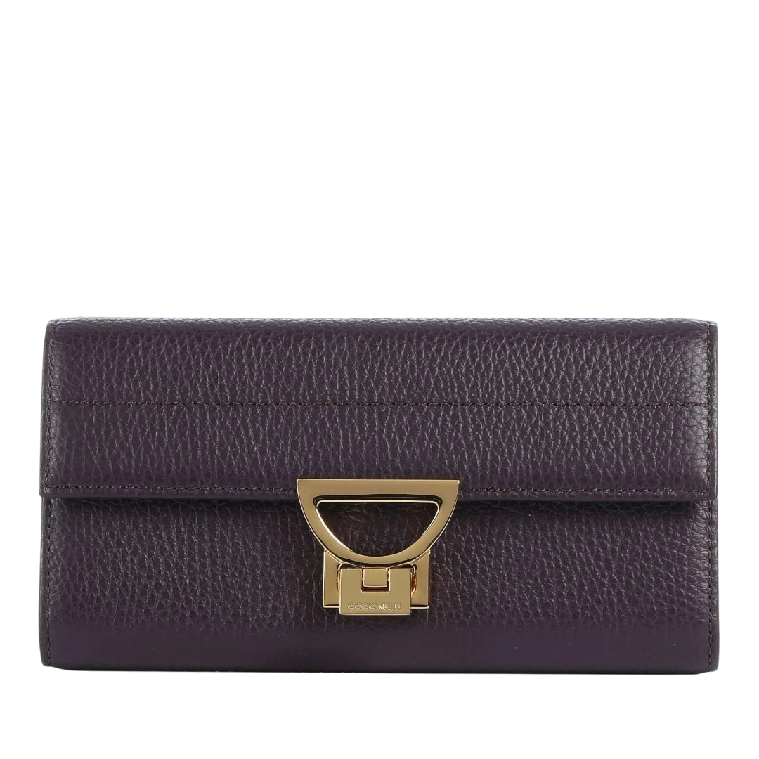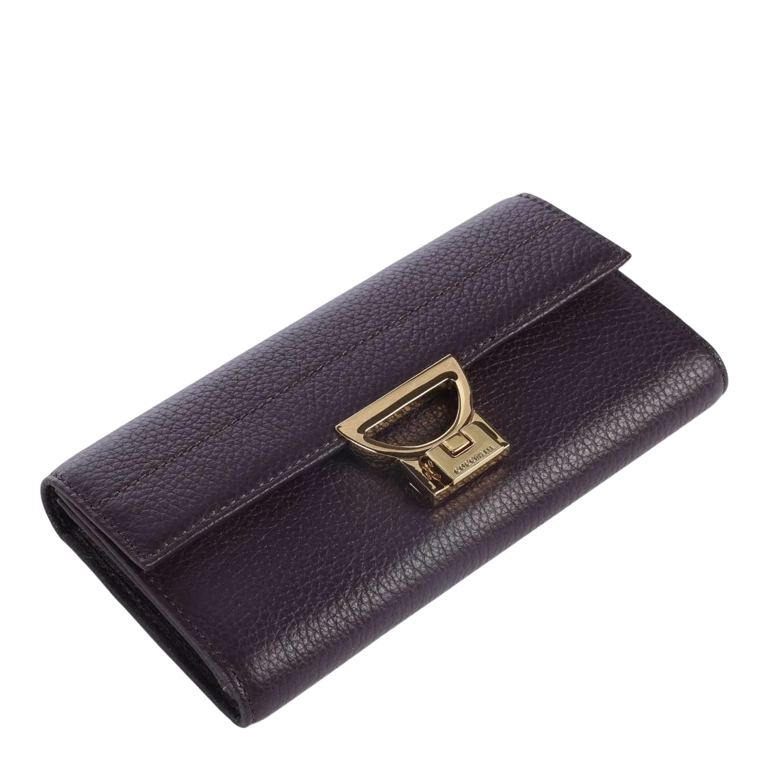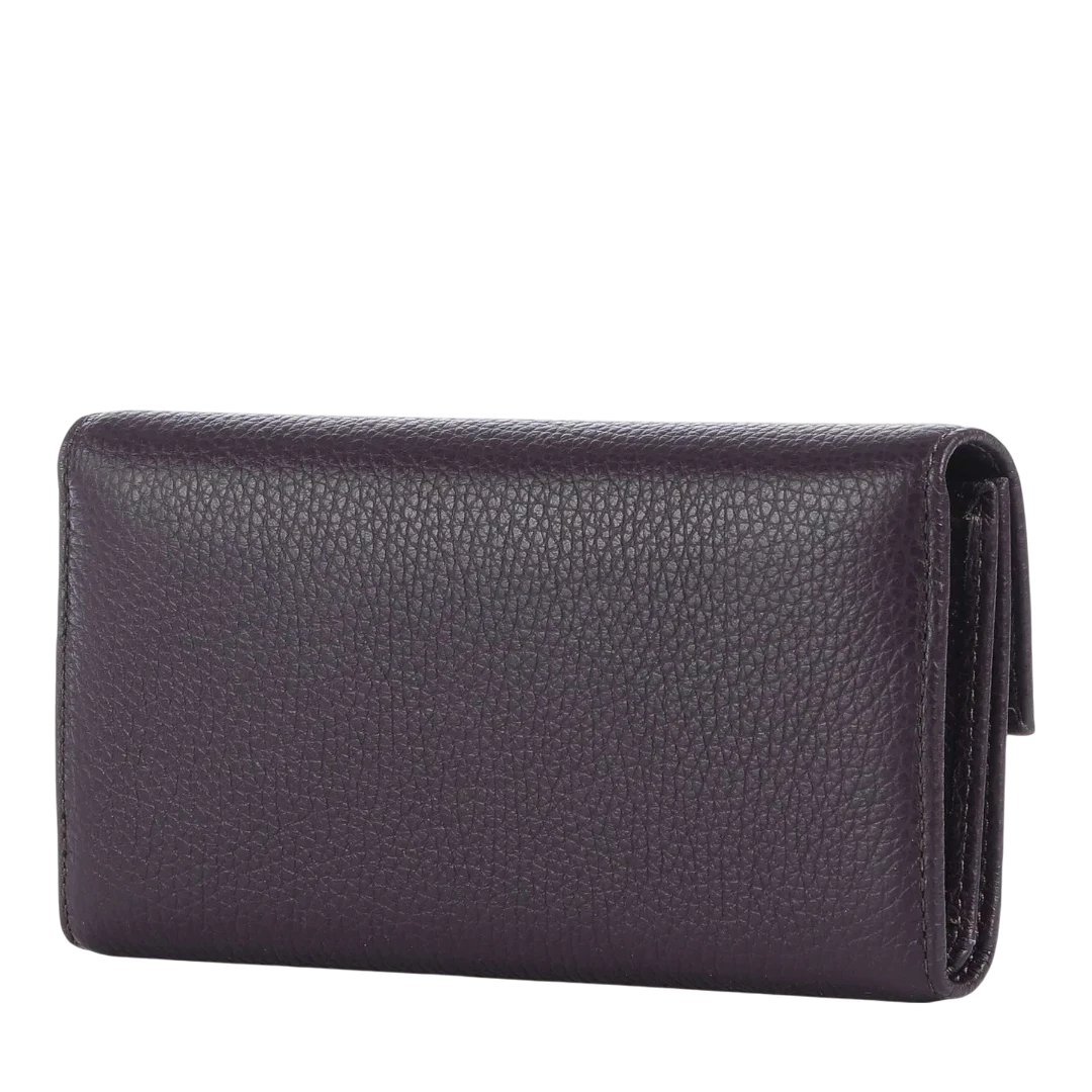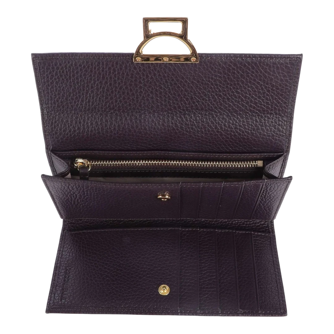 Coccinelle kožni novčanik izrađen je od visokokvalitetne prirodne kože s prepoznatljivom zrnastom teksturom koja odiše elegancijom i dugotrajnošću. U profinjenoj tamno ljubičastoj nijansi, ovaj model spaja luksuzan dizajn i funkcionalnost. Prednji dio krasi kultna Arlettis metalna kopča u zlatnom tonu – simbol prepoznatljivog Coccinelle stila. Unutrašnjost je pažljivo organizovana s više pretinaca za kartice, novčanice i dokumente, nudeći savršen balans između praktičnosti i sofisticiranosti. Idealni dodatak svakoj modernoj ženi koja cijeni italijanski luksuz u svakom detalju.