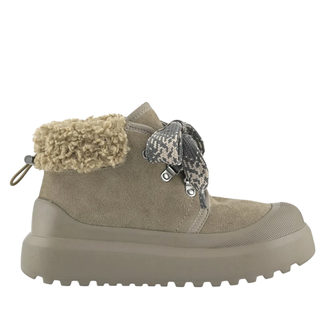 Taupe Colors of California gležnjače donose savršen balans između sportskog i modernog zimskog stila. Izrađene od meke brušene kože, s detaljem od umjetnog krzna na zadnjem dijelu i upečatljivim debljim vezicama s uzorkom, pružaju autentičan urbani izgled. Masivni gumeni đon osigurava stabilnost i udobnost, dok topla unutrašnjost garantuje maksimalnu zaštitu od hladnoće. Ove gležnjače su savršen izbor za dinamične, moderne žene koje žele spoj topline, praktičnosti i prepoznatljivog Colors of California modnog izraza.