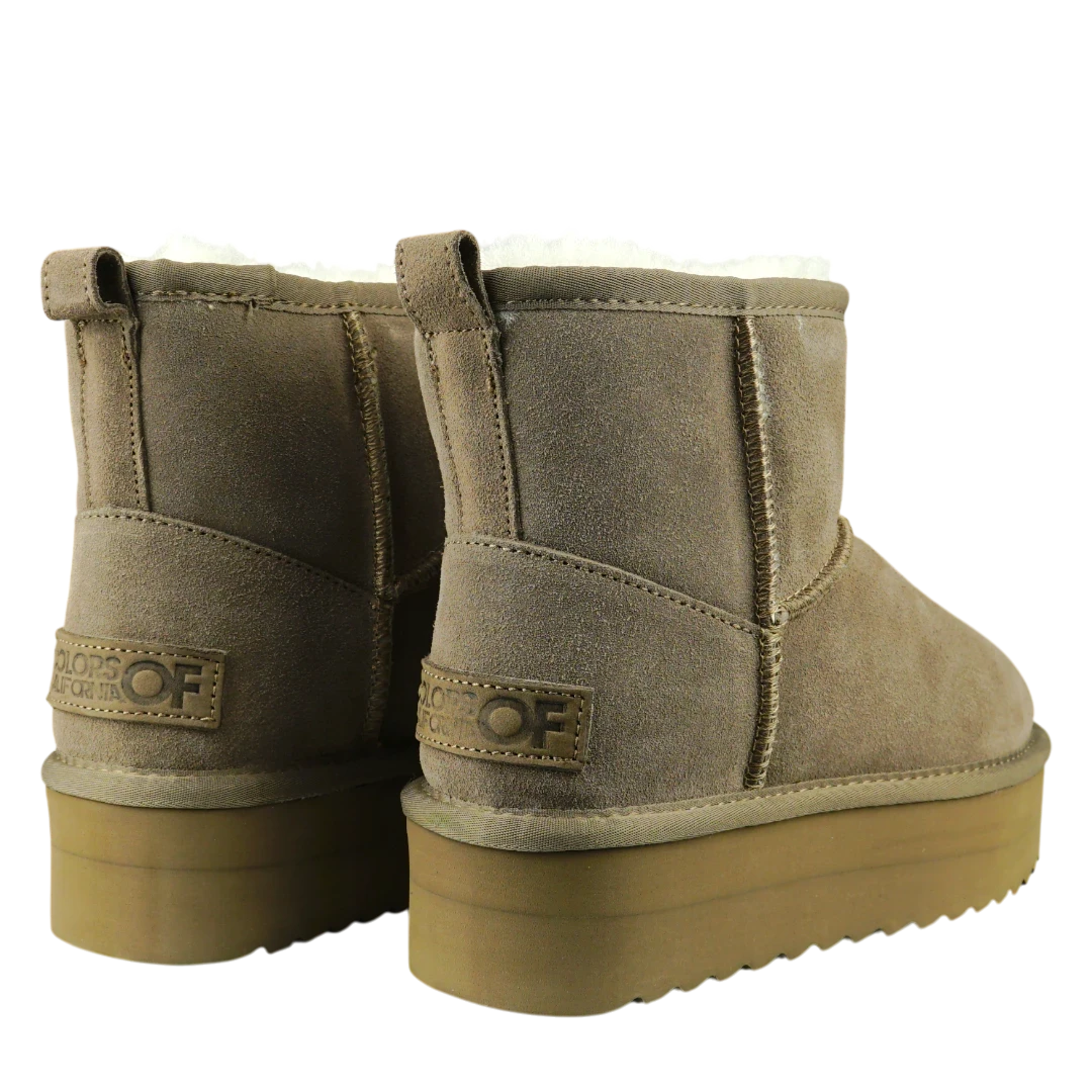Ove Colors of California gležnjače u sivoj nijansi donose savršenu kombinaciju udobnosti i modernog dizajna. Izrađene od meke brušene kože, s unutrašnjošću obloženom umjetnim krznom, pružaju maksimalnu toplinu i mekoću u hladnim danima. Povišeni gumeni đon s nazubljenim rubom osigurava stabilnost i udoban korak, dok minimalistički kroj omogućava lako kombinovanje s različitim zimskim outfitima. Idealne za svakodnevno nošenje, ove gležnjače spajaju funkcionalnost, jednostavnost i prepoznatljiv Colors of California urbani stil.