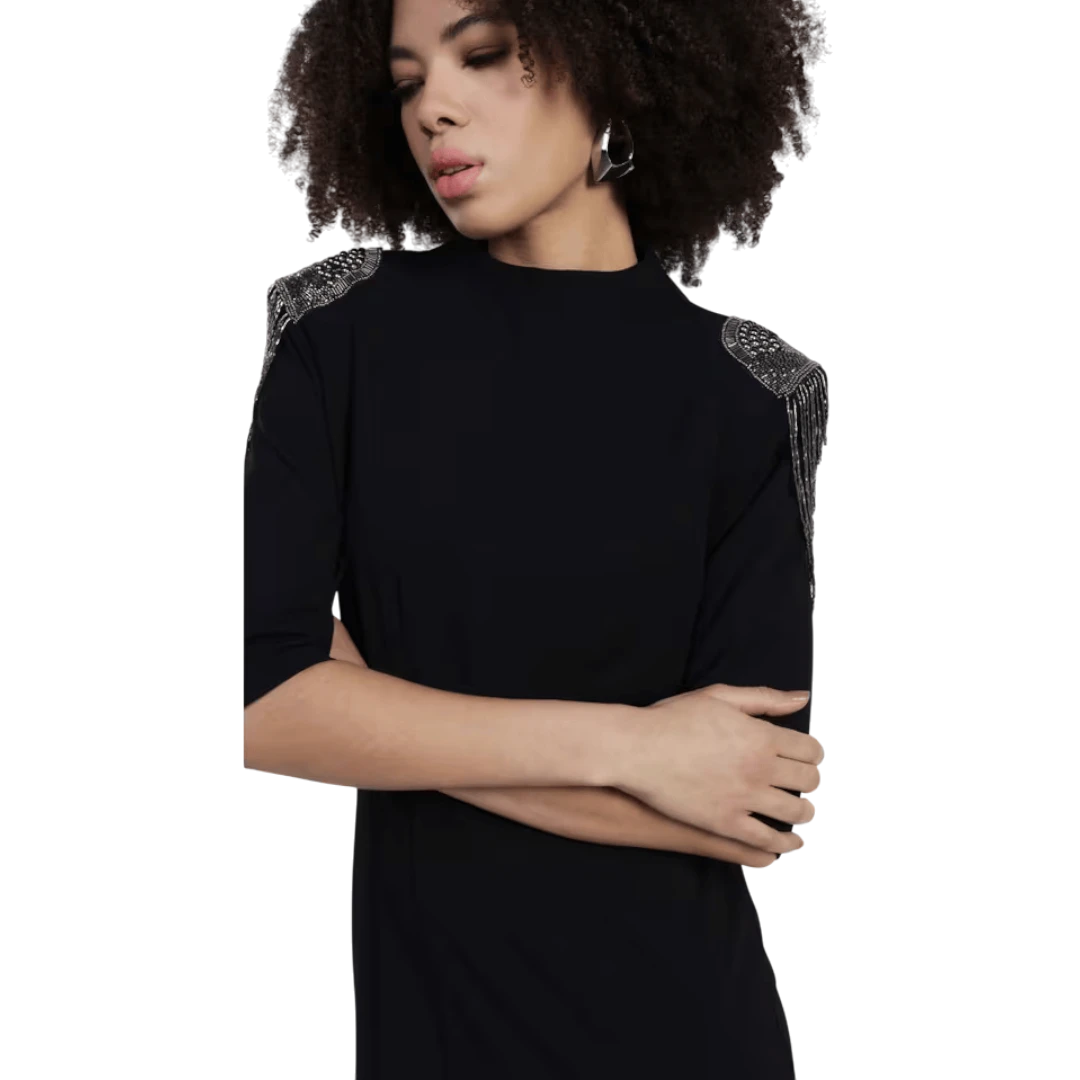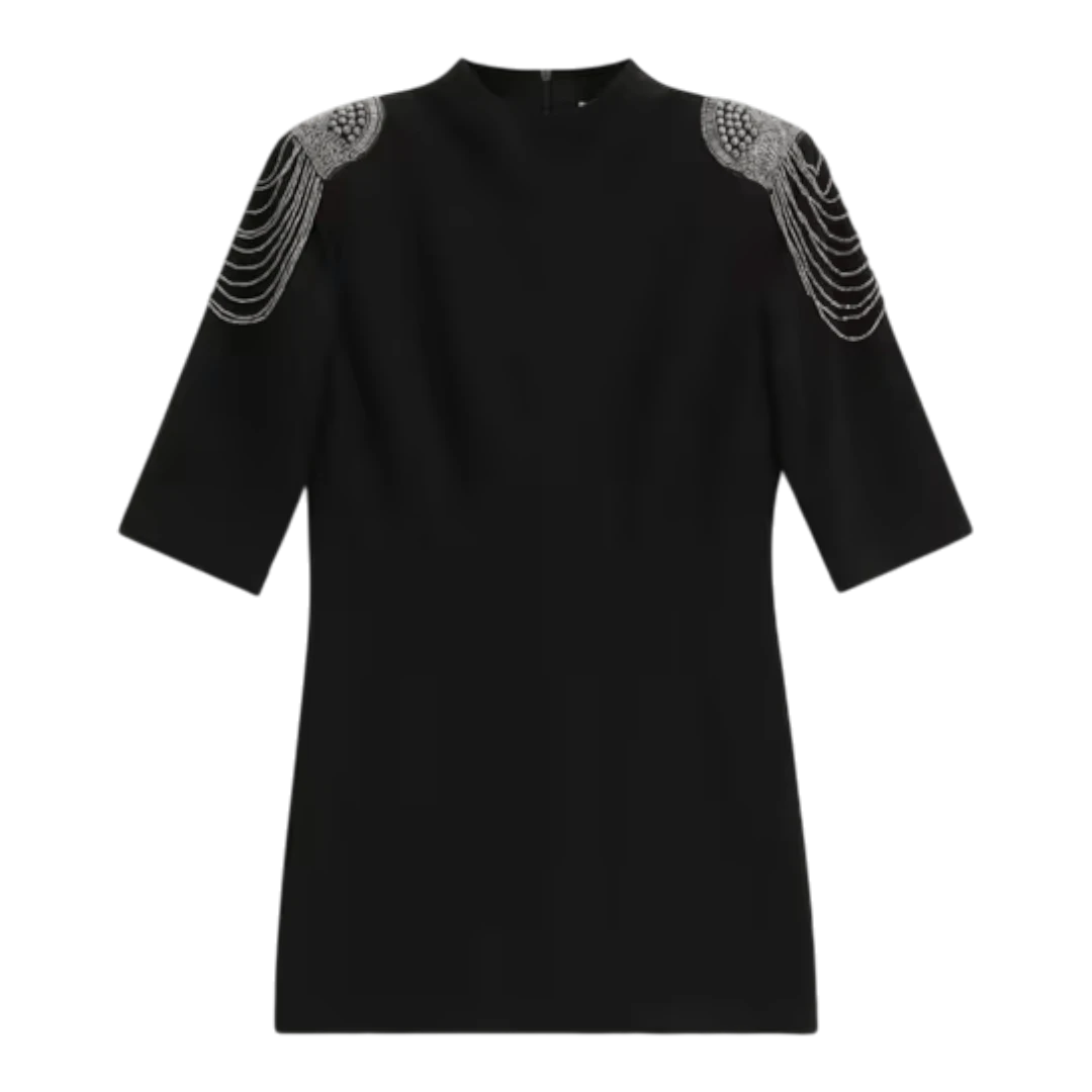 Elegantna i trendi kratka haljina brenda Dixie dizajnirana za moderne i stilizirane kombinacije. Model se ističe tankanima naramenicama ukrašenim šljokicama/ukrasnim detaljima koje dodaju glamurozan i ženstven izgled, savršen za večernje izlaske ili posebne prilike. Haljina ima pročišćen kroj koji lijepo prati figuru, s klasičnim izrezom i minimalnim detaljima koji ističu jednostavnu, a efektno glamuroznu estetiku. Izrađena je od udobnog materijala prilagođenog dnevnom i večernjem nošenju, reflektirajući prepoznatljiv italijanski stil marke Dixie koji slavi ženstvenost i sofisticiranost.