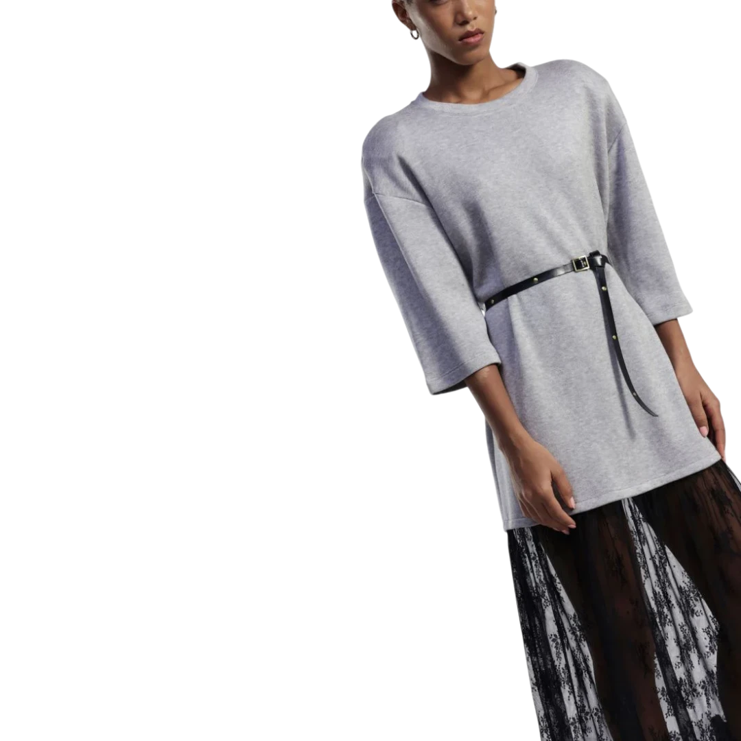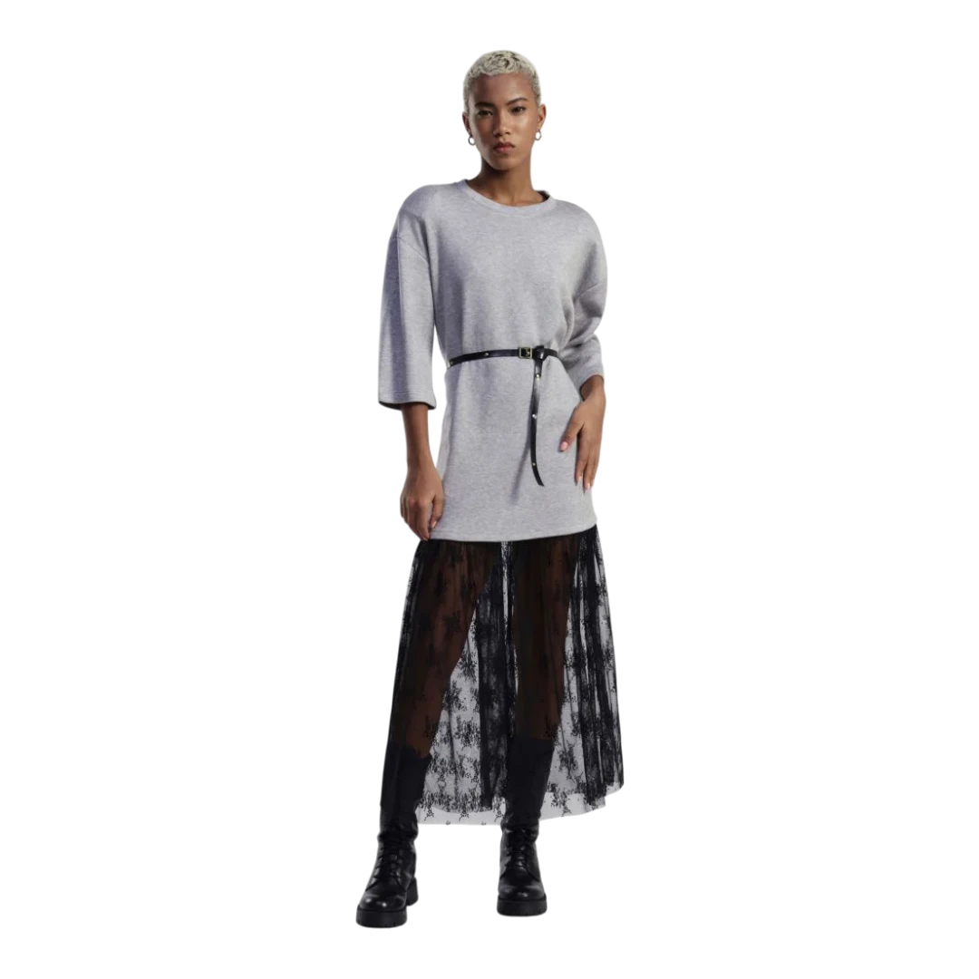 Ova Dixie haljina predstavlja sofisticiranu i modernu opciju za tvoj stil. Izrađena je u elegantnoj sivoj boji, sa jednostavnim, ali profinjenim krojem koji lijepo prati liniju tijela i ističe siluetu. Haljina odiše minimalističkim šarmom, pružajući klasičan izgled koji se lako kombinuje uz različite modne komade i obuću.