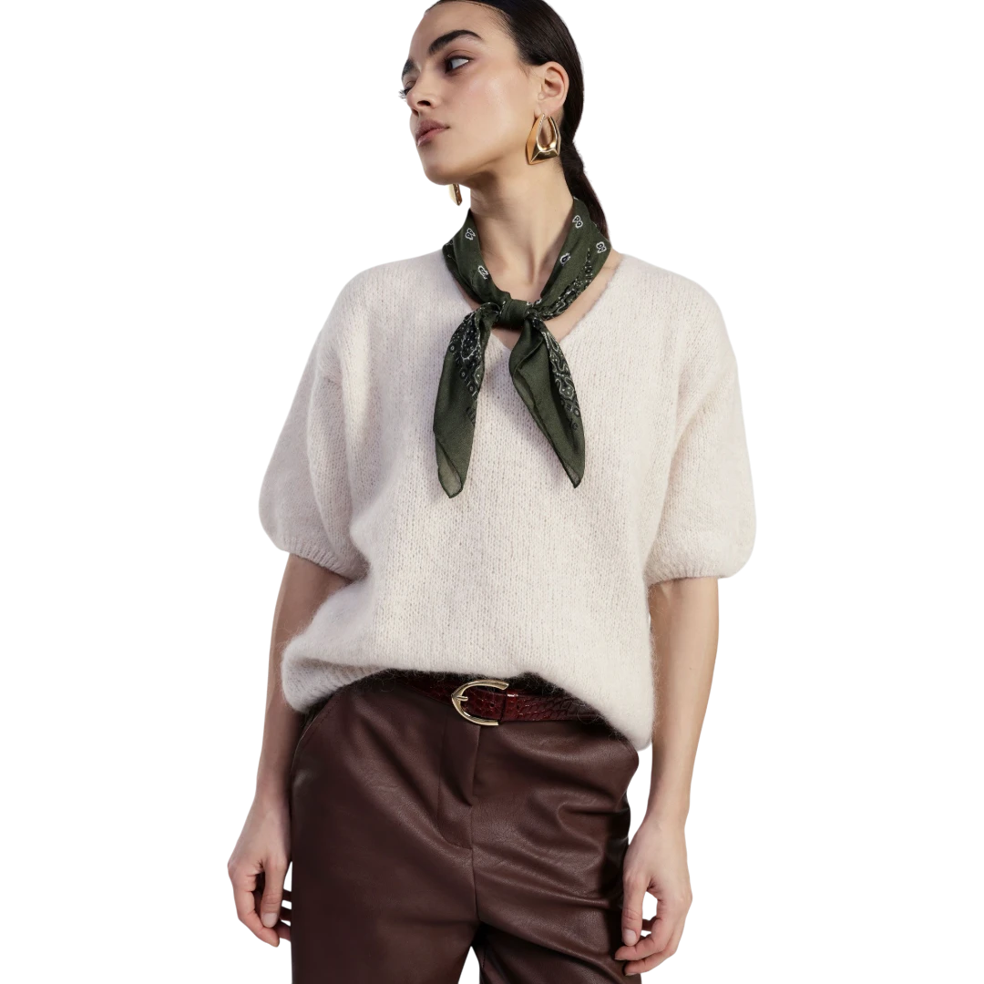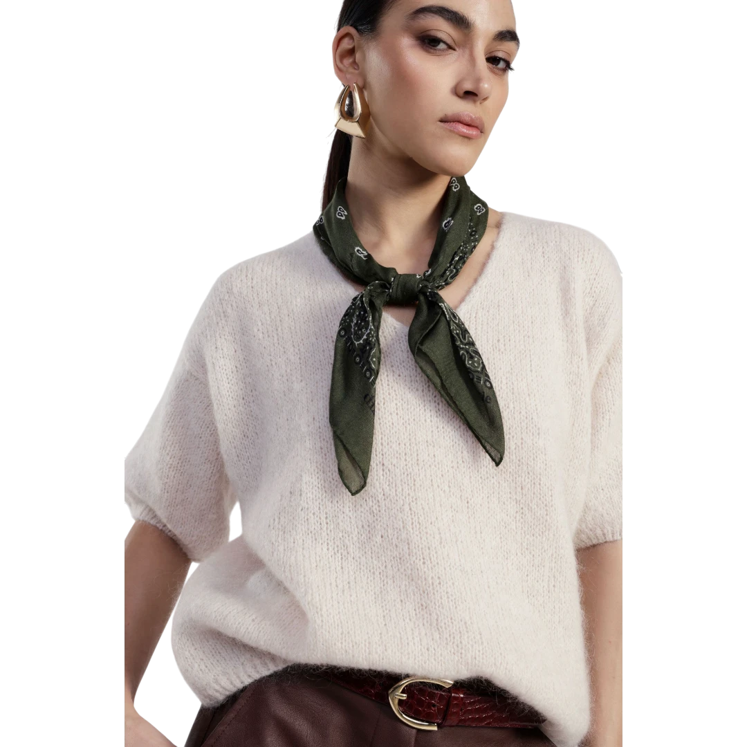 SKU: 46406Dixie majica s maramom savršen je izbor za ležerne, ali stilizirane kombinacije. Izrađena od ugodnog i prozračnog materijala, pruža maksimalnu udobnost tijekom cijelog dana. Poseban detalj je uključena marama koja se može nositi oko vrata, u kosi ili vezana na torbu, što omogućuje različite modne varijacije.