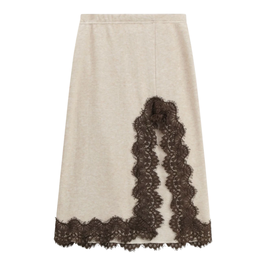 Dixie suknja sa čipkom odiše elegancijom i ženstvenošću. Izrađena od kvalitetnog i ugodnog materijala, pruža udobnost i lijepo pristaje različitim tipovima građe. Nježni detalji od čipke dodaju romantičnu notu i profinjen izgled, čineći ovu suknju savršenim izborom kako za svakodnevne kombinacije, tako i za posebne prilike. Lako se kombinuje uz košulje, bluze ili džempere, za moderan i sofisticiran stil.