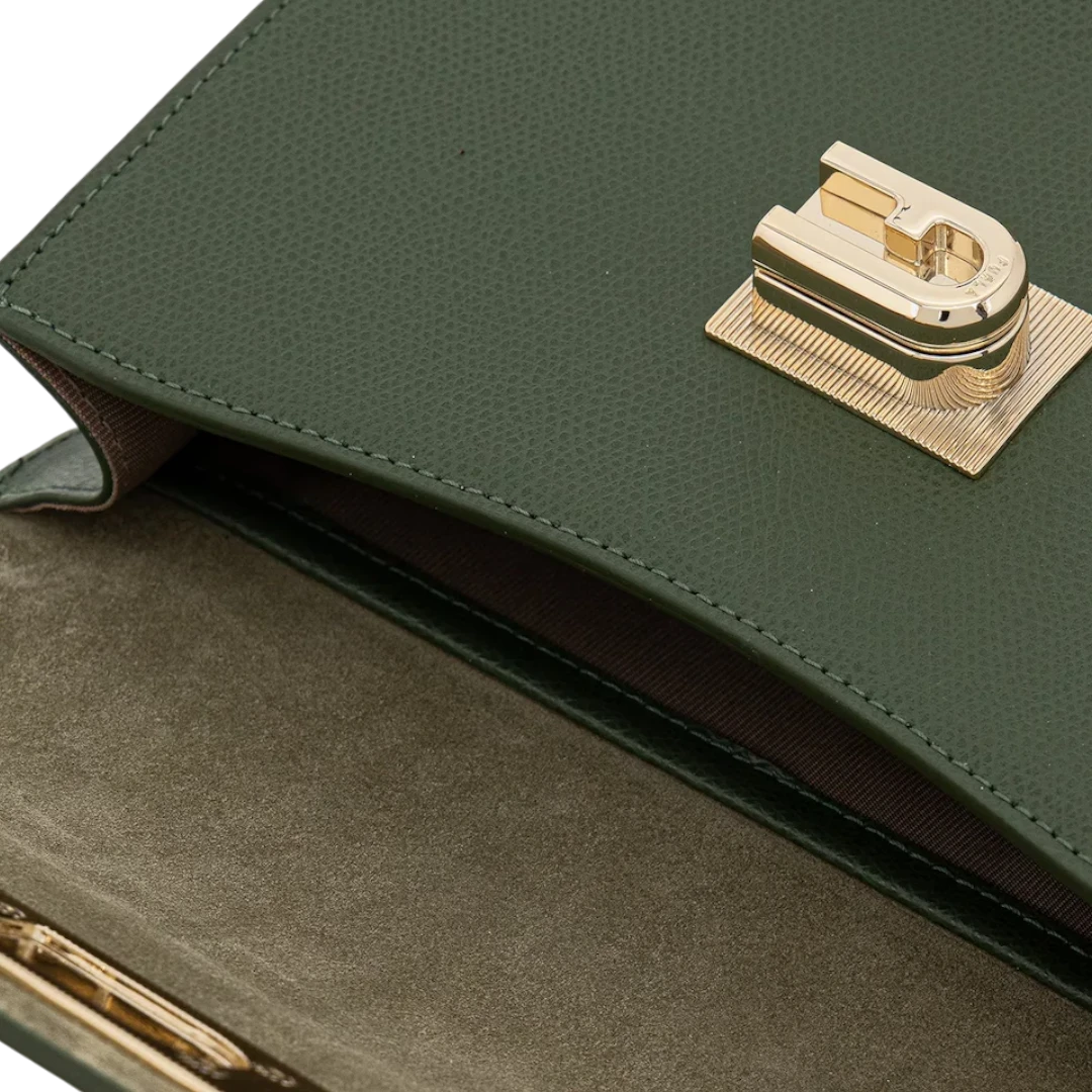 Ova Furla torba u elegantnoj nijansi zelene boje spaja sofisticiranost i funkcionalnost na savršen način. Izrađena od visokokvalitetne kože, ukrašena prepoznatljivim Furla Arch logom u zlatnom tonu, odiše profinjenošću. Lančani remen dodaje dašak glamura, dok kompaktnan oblik čini ovaj model idealnim za dan i večer. Bezvremenska elegancija u modernom izdanju.