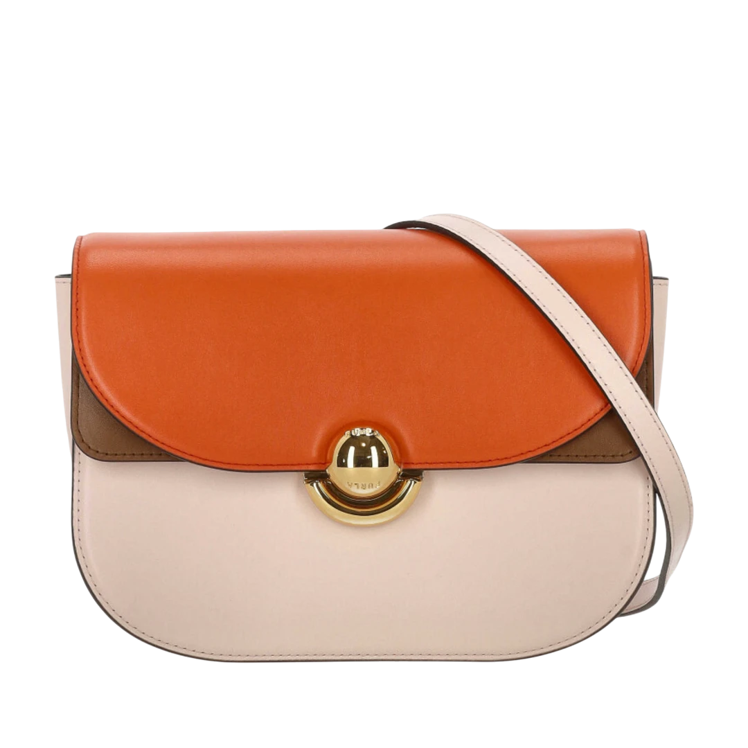 Furla torba u prepoznatljivom Sfera dizajnu donosi moderan spoj boja i bezvremenske elegancije. Kombinacija nježno bež, tople smeđe i vibrantne narandžaste nijanse daje torbi sofisticiran, ali razigran izgled — savršen za jesenje dane. Izrađena od glatke kože, ukrašena je zlatnom sfernom kopčom koja simbolizuje luksuzan Furla potpis. Praktična crossbody silueta čini je idealnim izborom za svaki dan — od poslovnih outfita do večernjih izlazaka.