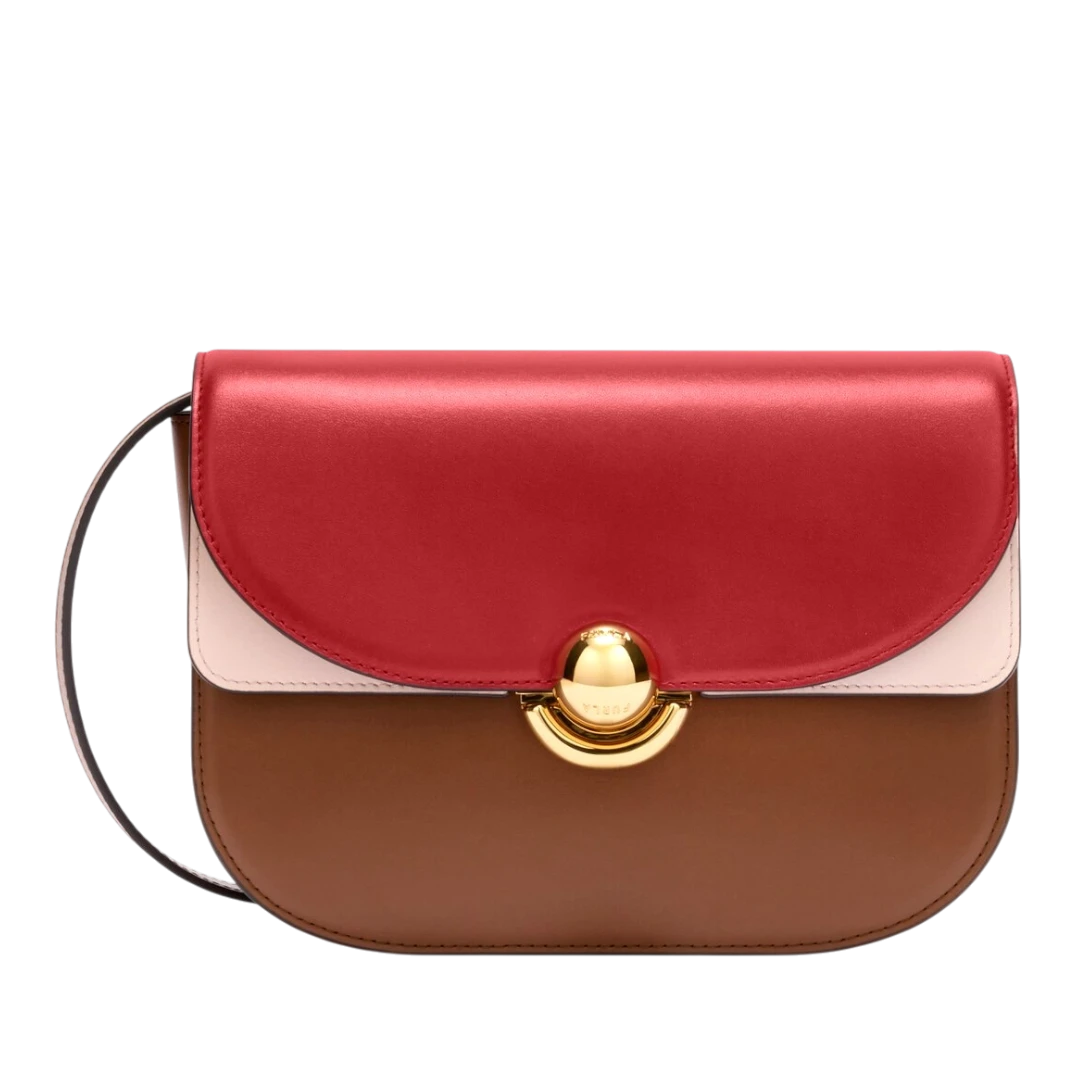 Furla Sfera torba u trobojnoj kombinaciji crvene, puder roze i smeđe kože odiše elegancijom s modernim zaokretom. Ikonična zlatna sferna kopča donosi prepoznatljiv Furla pečat luksuza, dok čiste linije i precizan dizajn čine ovaj model idealnim za dan i noć. Savršen spoj boja i oblika za ženu koja voli klasiku, ali se ne boji istaknuti stilom.