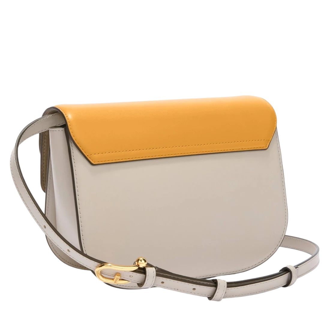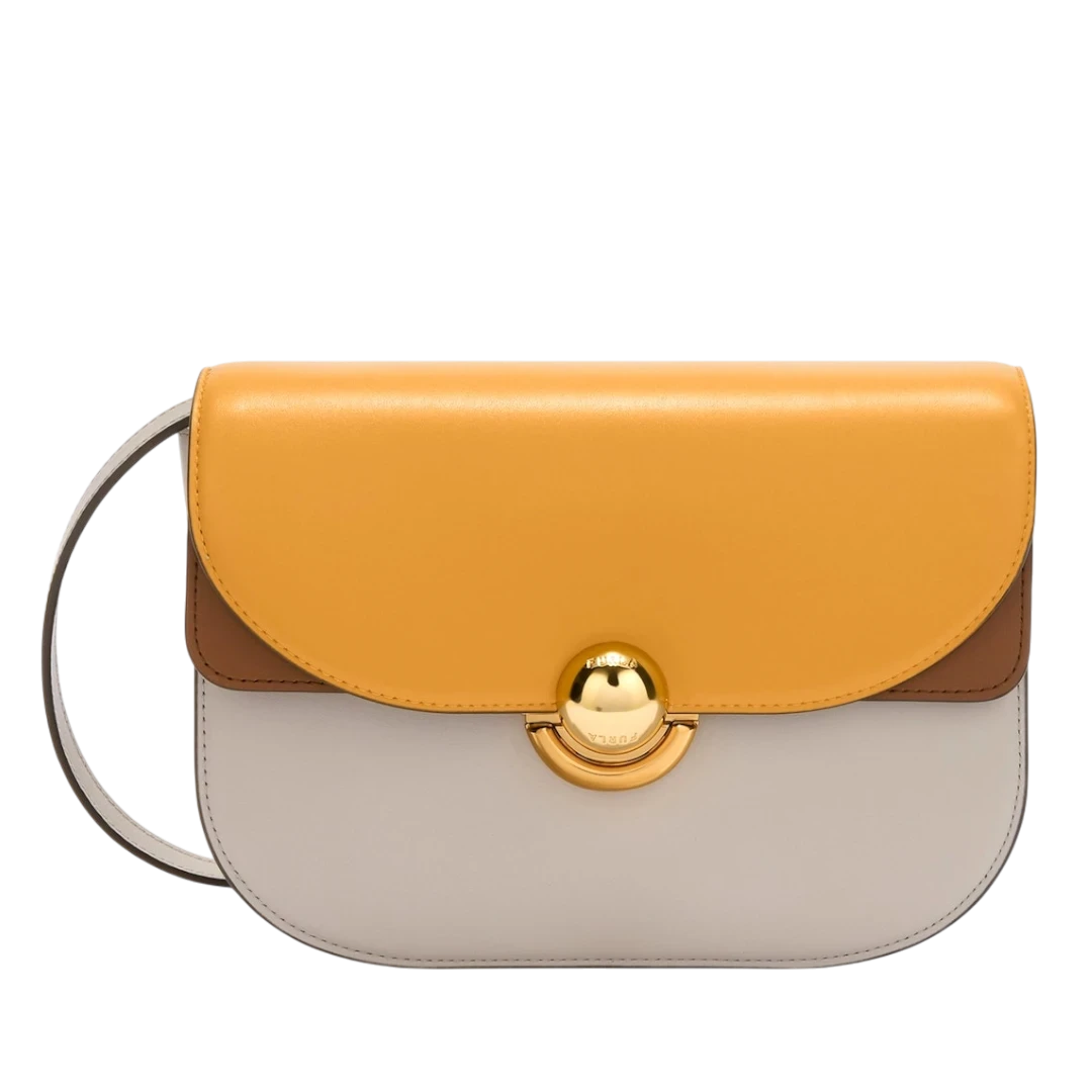 SKU: 43695Furla torba spoj je elegancije i suvremenog dizajna u jednoj savršeno balansiranoj silueti. Izrađena od glatke kože u kombinaciji toplih tonova senf žute, svijetlosive i smeđe, ova torba osvaja sofisticiranim kontrastima i prepoznatljivim zlatnim metalnim zatvaračem u obliku sfere.