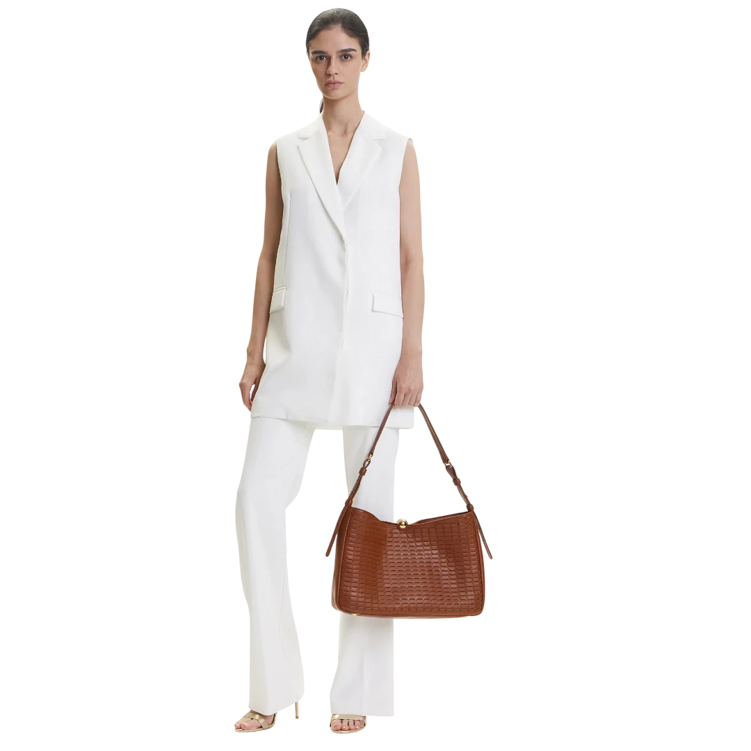 Furla torba u toploj smeđoj nijansi ističe se prefinjenim reljefnim uzorkom koji daje savremen i luksuzan izgled. Izrađena od visokokvalitetne prirodne kože, pruža savršenu kombinaciju elegancije i praktičnosti. Podesiva naramenica omogućava udobno nošenje preko ramena, dok zlatni metalni detalj s diskretnim Furla logotipom naglašava sofisticiran dizajn. Prostrana unutrašnjost s dodatnim džepovima čini je idealnim izborom za svakodnevne obaveze, ali i večernje prilike kada želite da vaš stajling odiše bezvremenskim šarmom.