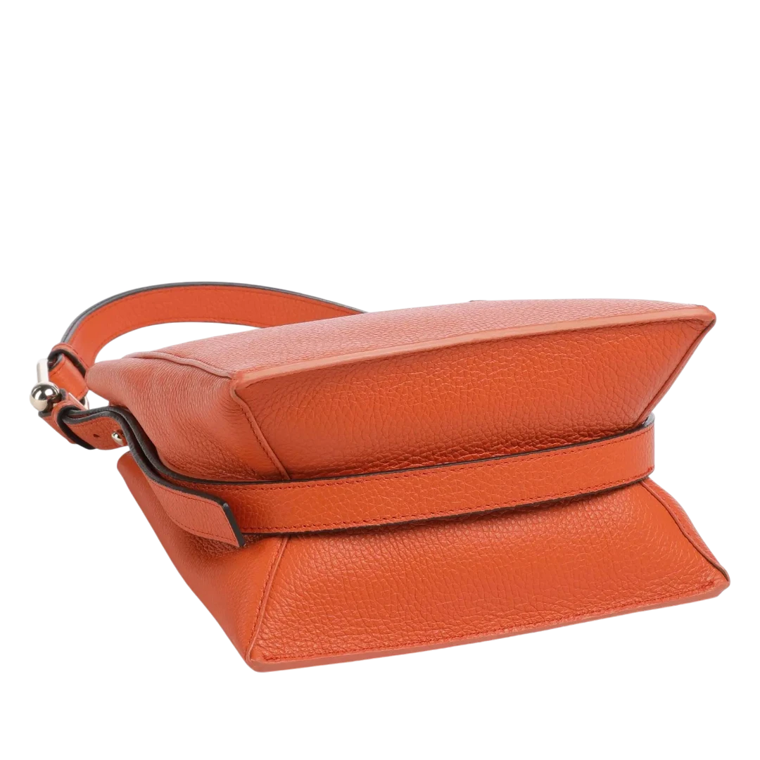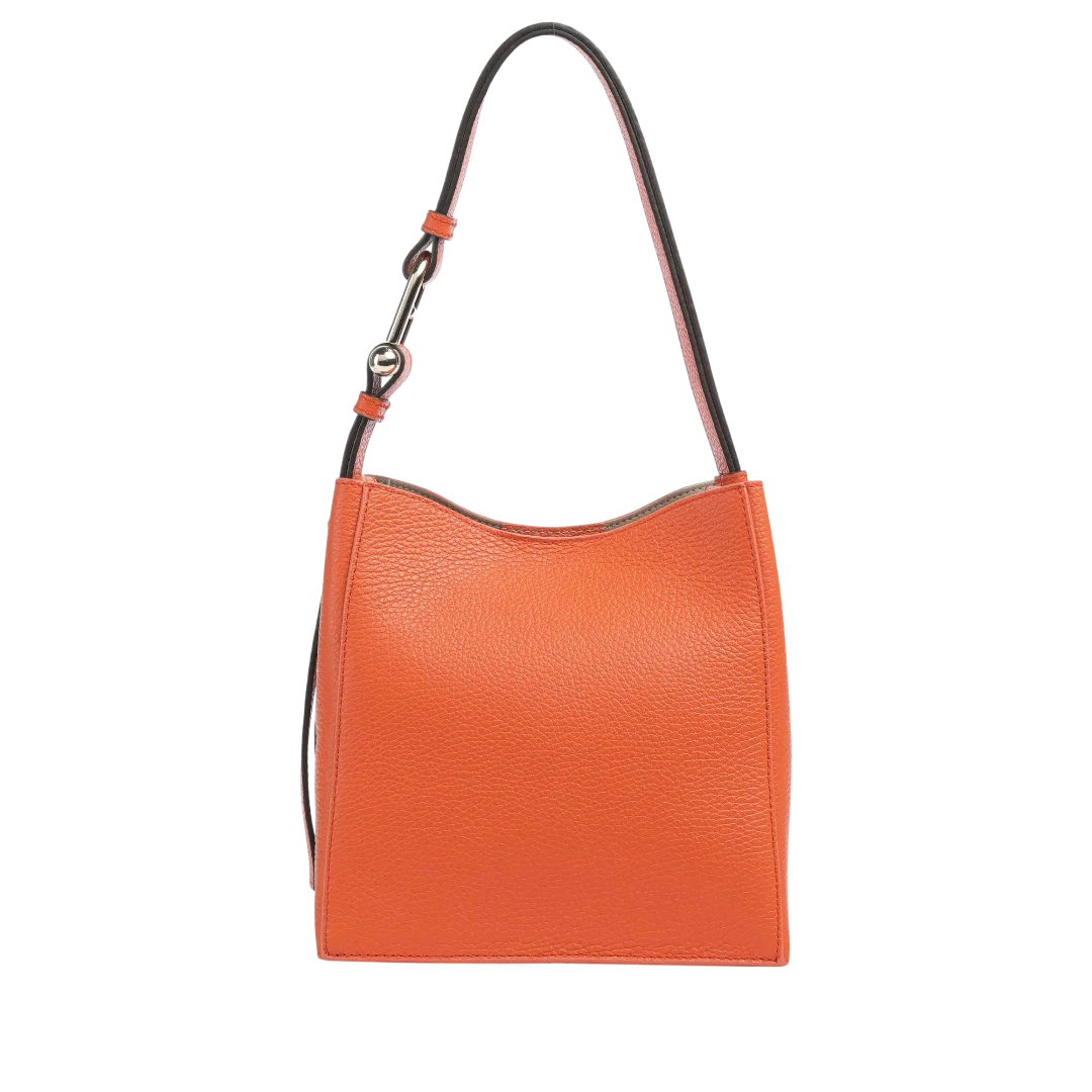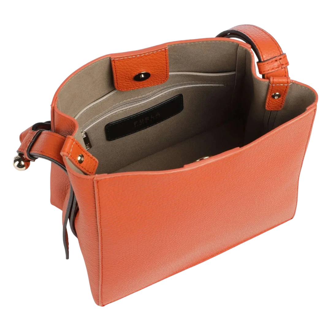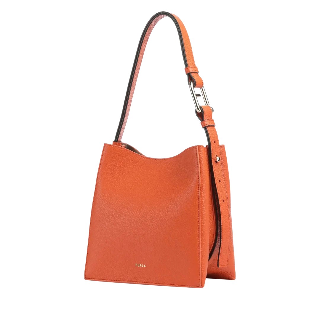 Furla torba u jarko narandžastoj nijansi unosi energiju i svježinu u svaku kombinaciju. Izrađena od mekane, prirodne zrnaste kože, pruža savršenu ravnotežu između luksuza i svakodnevne praktičnosti. Čistih, modernih linija i blago valovitog gornjeg ruba, torba ima podesivu ručku koja omogućava nošenje na ramenu ili u ruci. Prostrana unutrašnjost i diskretni metalni detalji čine je idealnim izborom za žene koje vole upečatljive, ali elegantne modne dodatke.