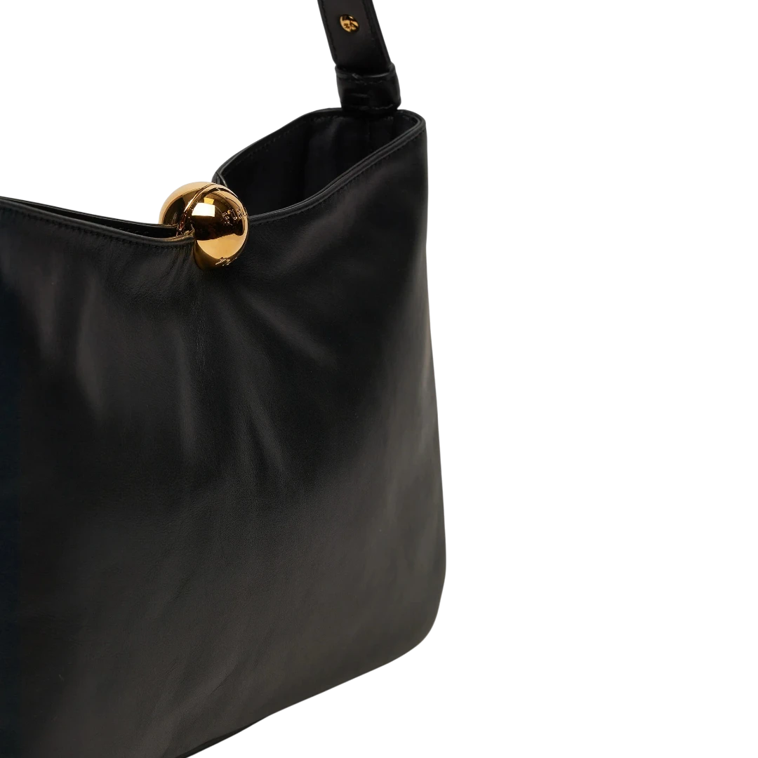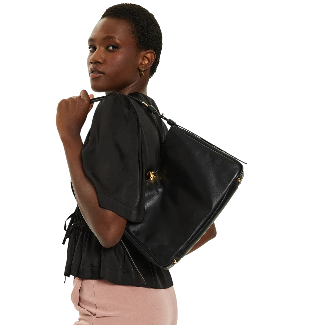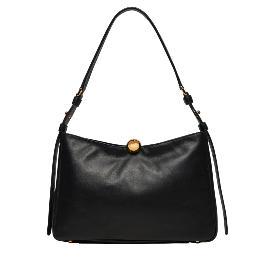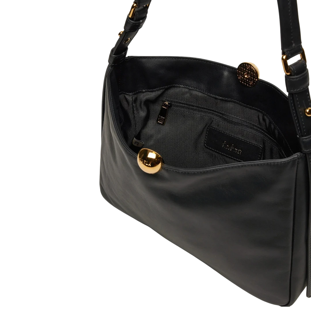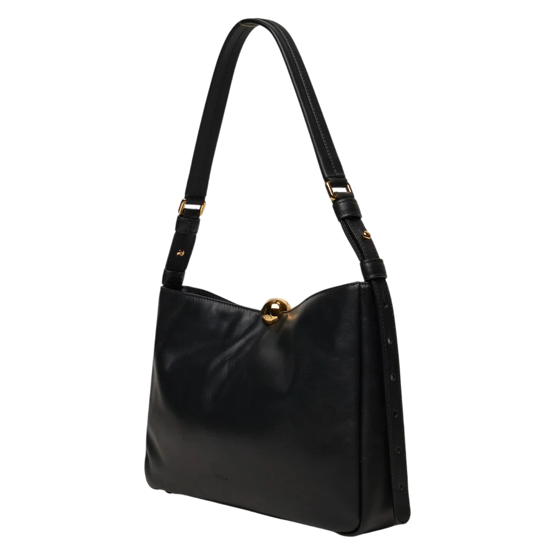 Furla torba u crnoj boji donosi spoj sofisticiranog dizajna i prepoznatljive teksture. Izrađena od visokokvalitetne kože s elegantnim reljefnim uzorkom, ističe se zlatnim sfernim kopčanjem koje je zaštitni znak Furla kolekcije. Podesiva kožna ručka omogućava udobno nošenje preko ramena ili u ruci, dok prostrana unutrašnjost nudi dovoljno mjesta za svakodnevne potrepštine. Ova torba savršen je izbor za žene koje cijene luksuz, funkcionalnost i profinjen stil u svakodnevnim i večernjim kombinacijama.