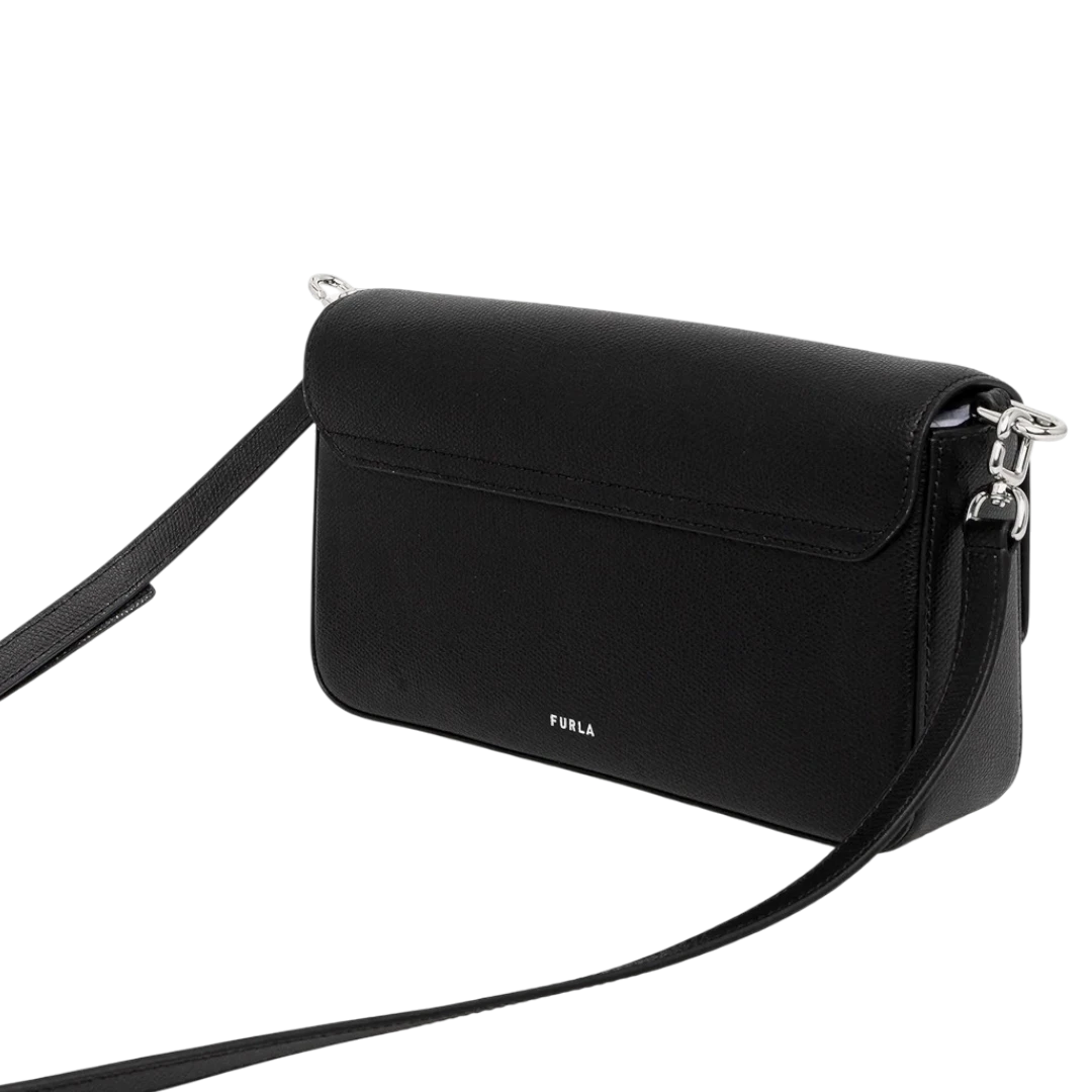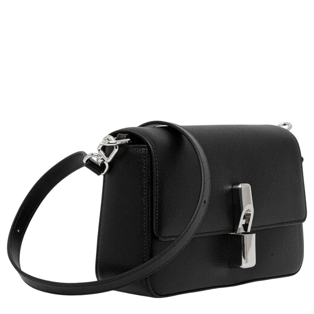 Furla torba u crnoj boji unosi savršen balans luksuza i modernog minimalizma. Izrađena od visokokvalitetne, zrnaste kože, ističe se elegantnim pravougaonim oblikom i prepoznatljivim Furla 1927 kopčanjem u ton boje torbe, što joj daje sofisticiran i monohromatski izgled. Kompaktan, ali praktičan dizajn nudi dovoljno prostora za osnovne potrepštine, dok podesivi kožni kaiš omogućava nošenje preko ramena ili crossbody. Idealan je dodatak za dnevne i večernje kombinacije, pružajući upečatljiv akcenat svakoj odjevnoj kombinaciji.