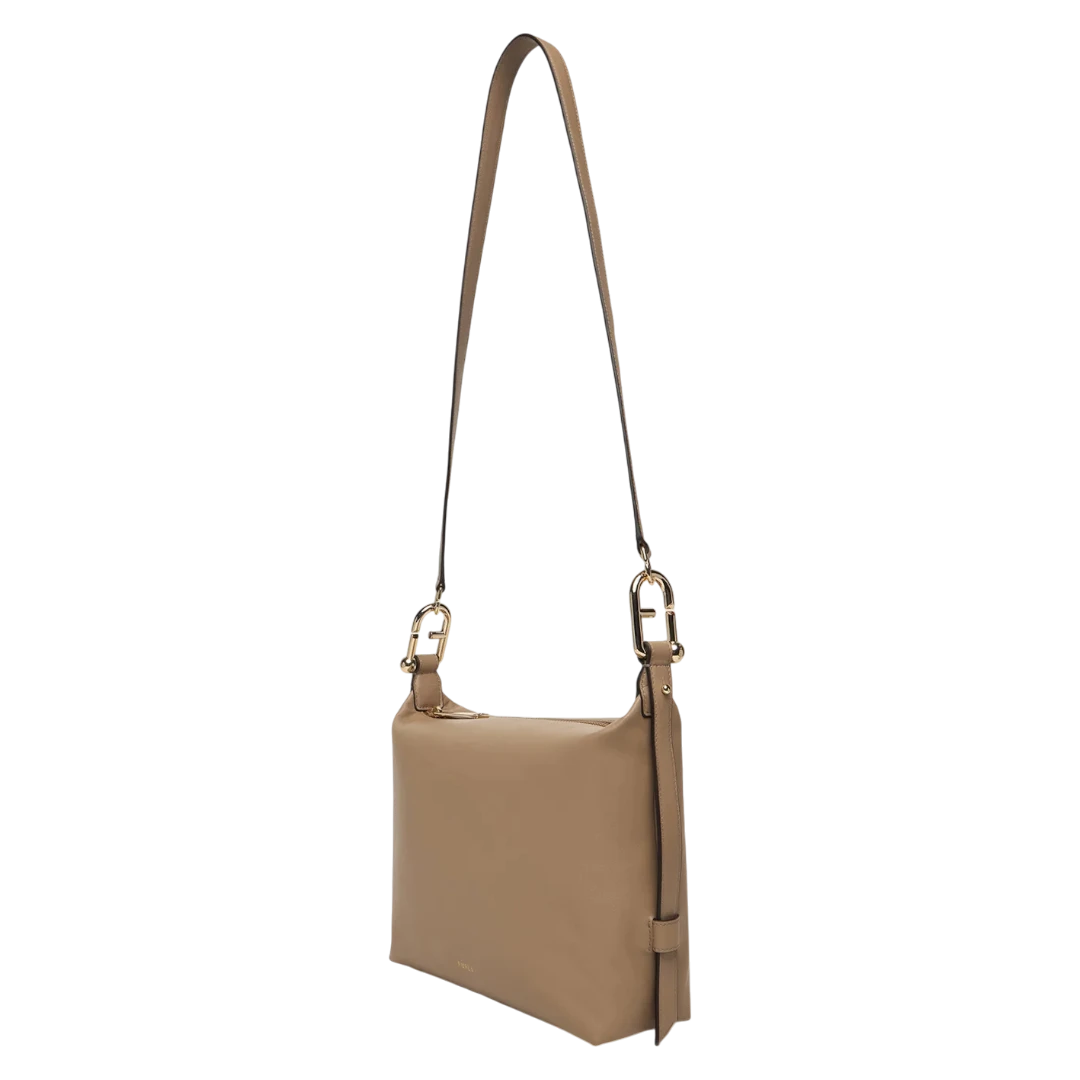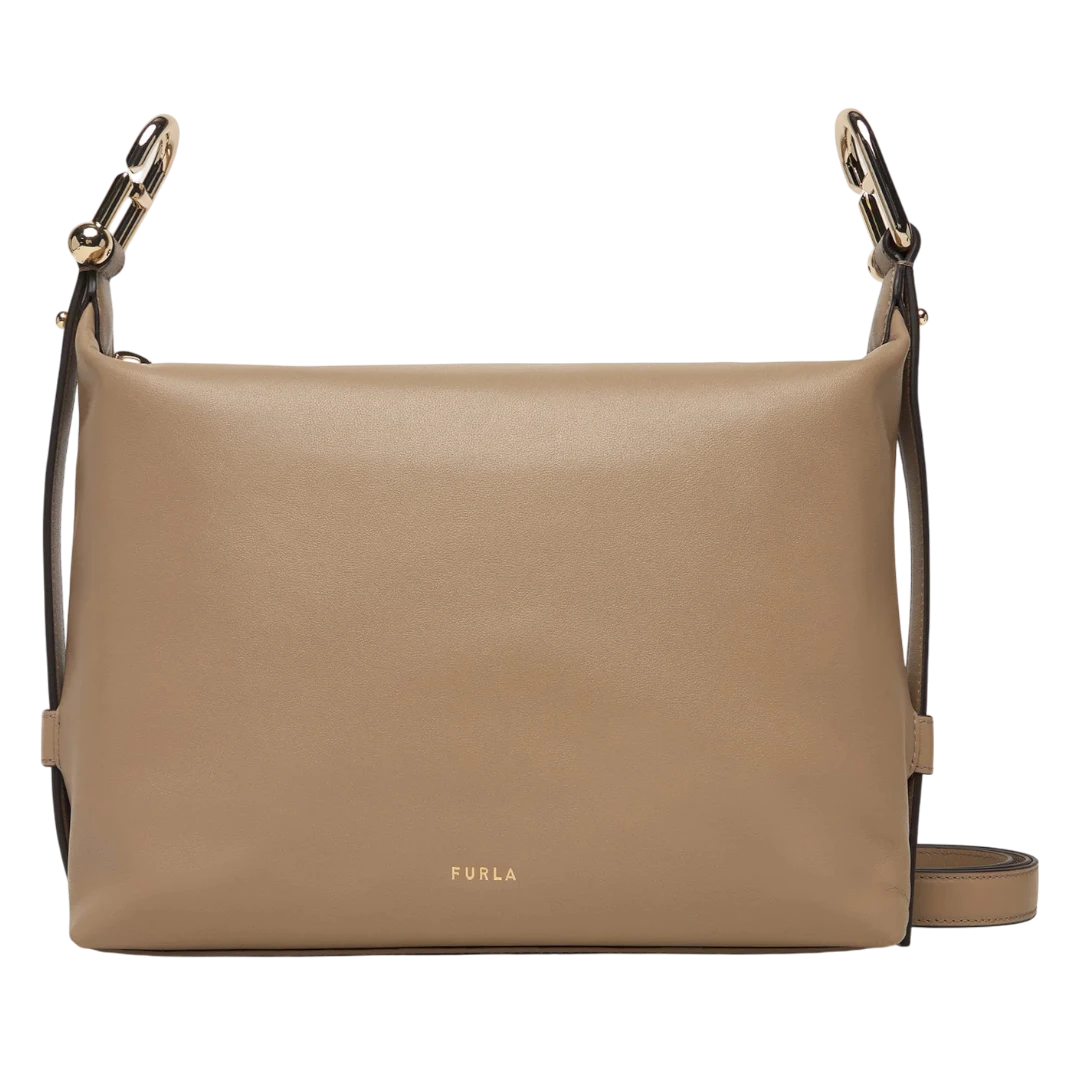 Ova Furla torba savršen je primjer minimalističke elegancije i luksuza u najčistijem obliku. Izrađena od mekane, glatke kože u profinjenoj bež nijansi, ističe se čistim linijama i jednostavnim dizajnom koji odiše sofisticiranošću. Diskretni zlatni Furla logotip na prednjoj strani dodaje suptilnu notu luksuza, dok podesivi kožni remen omogućava nošenje torbe preko ramena ili crossbody stilom. Prostrana unutrašnjost čini je praktičnim izborom za svakodnevne obaveze, zadržavajući pritom elegantan izgled. Klasika koja nikada ne izlazi iz mode – ova Furla torba je idealan dodatak za žene koje vole svestranost, profinjenost i vrhunski italijanski dizajn.