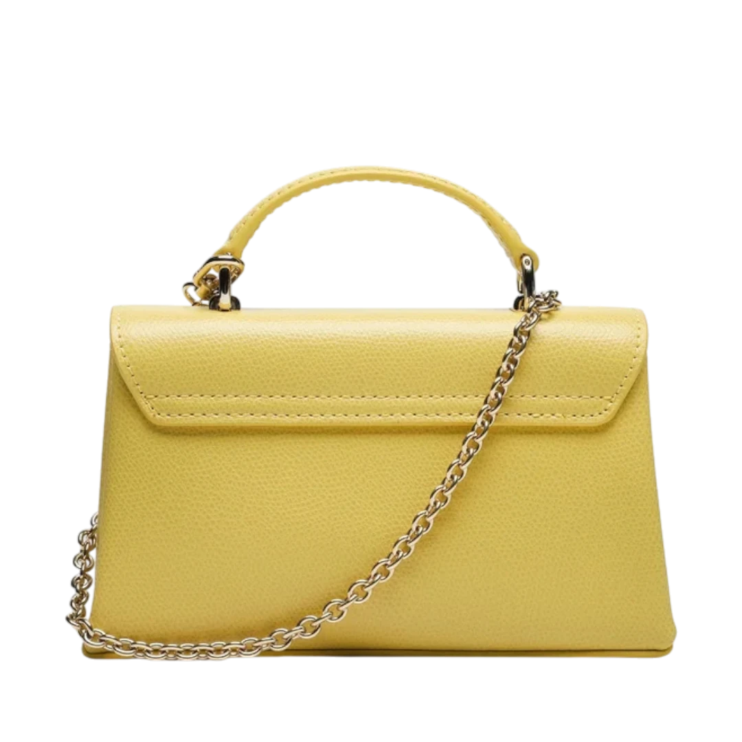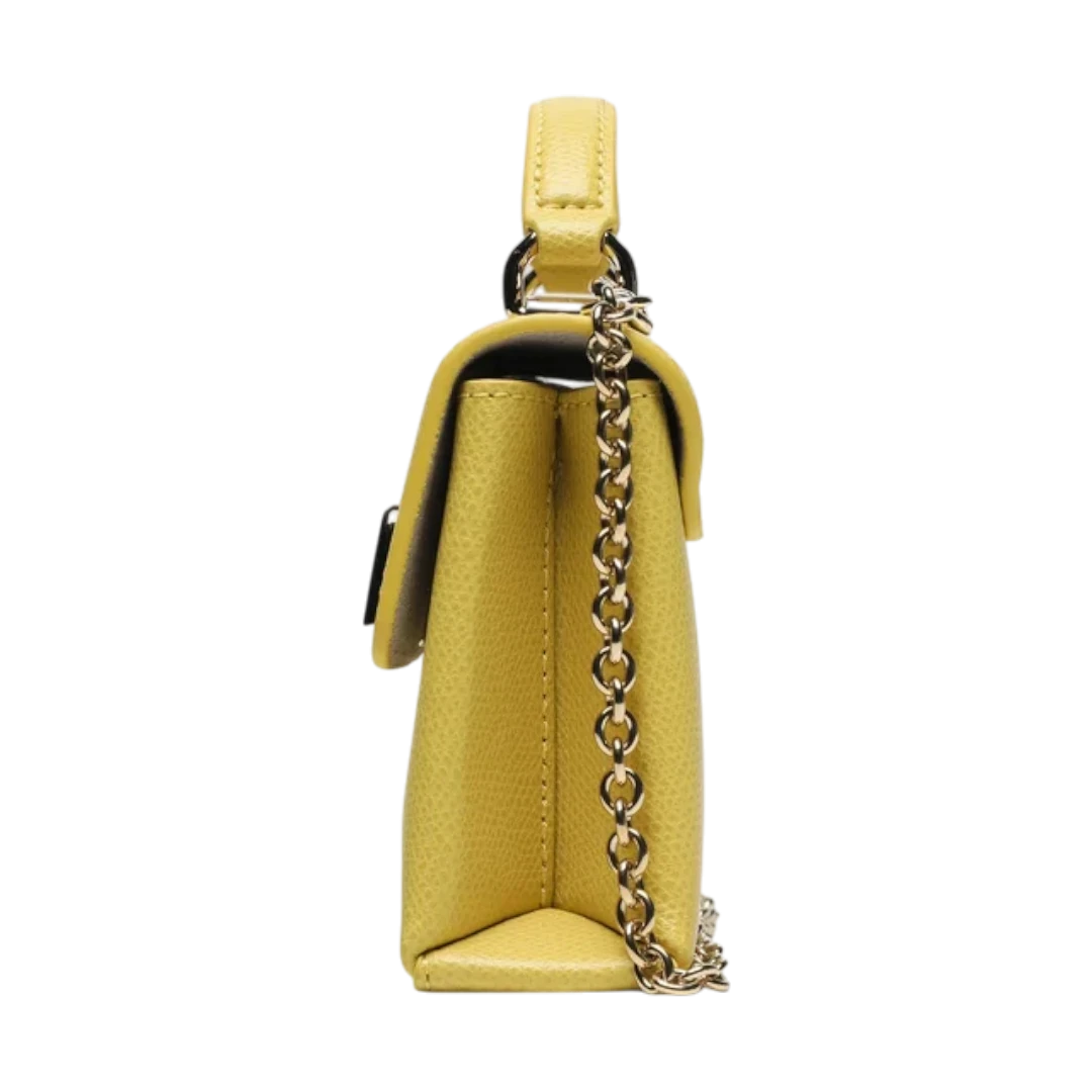 Furla torba u zlatno žutoj nijansi donosi savršenu ravnotežu klasike i modernog luksuza. Prepoznatljiv metalni zakretni logo u zlatnom tonu i lančani remen daju joj notu glamura, dok je čvrsta silueta čini idealnim izborom za svaku priliku – od dnevnih kombinacija do večernjih izlazaka. Elegantna, sofisticirana i uvijek u centru pažnje – torba koja podiže svaki outfit.