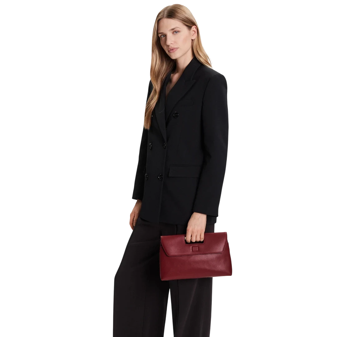 Furla torba u elegantnoj bordo nijansi donosi savršen spoj sofisticiranosti i modernog dizajna. Izrađena od glatke kože, s upečatljivim zlatnim metalnim detaljem na ručki, ova torba predstavlja luksuzan dodatak za večernje prilike ili poslovne outfite. Njen minimalistički oblik i bogata boja čine je bezvremenskim komadom koji svakoj kombinaciji dodaje dašak profinjenosti.