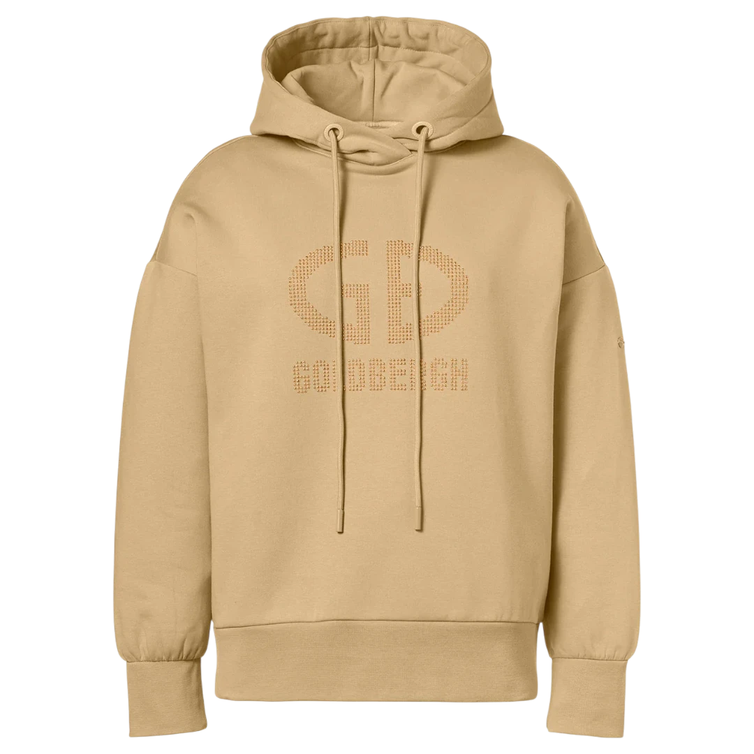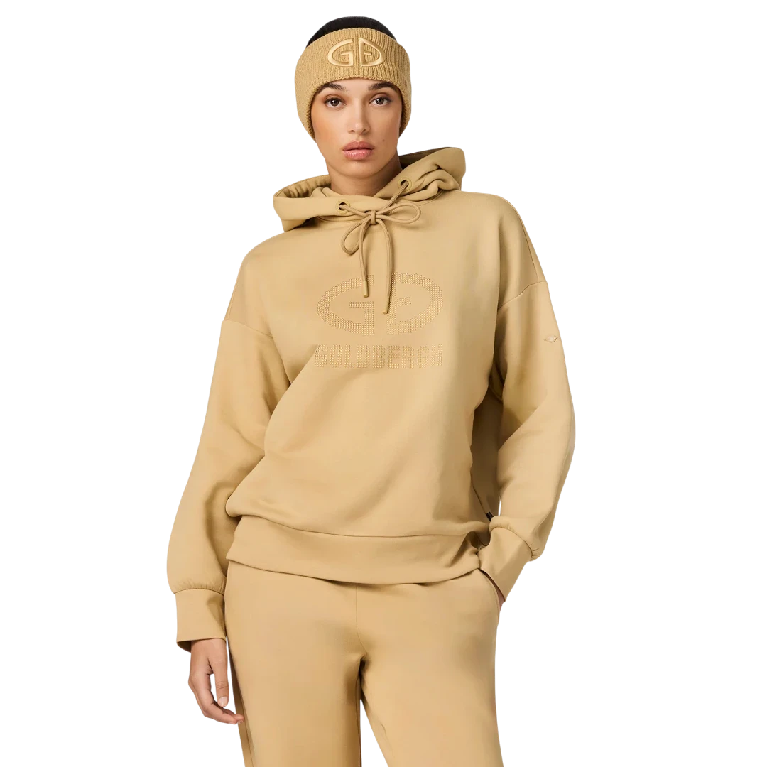 Luksuzna udobnost u modernom izdanju — Goldbergh dukserica s kapuljačom izrađena je od vrhunskog pamuka s dodatkom elastičnih vlakana, pružajući savršenu mekoću i oblik koji zadržava liniju. Klasičan oversized kroj s kapuljačom na vezice i elastičnim rubovima osigurava udobnost i slobodu pokreta, dok Goldbergh logotip od sjajnih kristala na prednjem dijelu unosi prepoznatljiv dašak glamura. U nijansi bež luksuza, idealna je za casual, sportske i après-ski kombinacije. Savršen komad za žene koje žele izgledati sofisticirano čak i u najopuštenijim trenucima.
