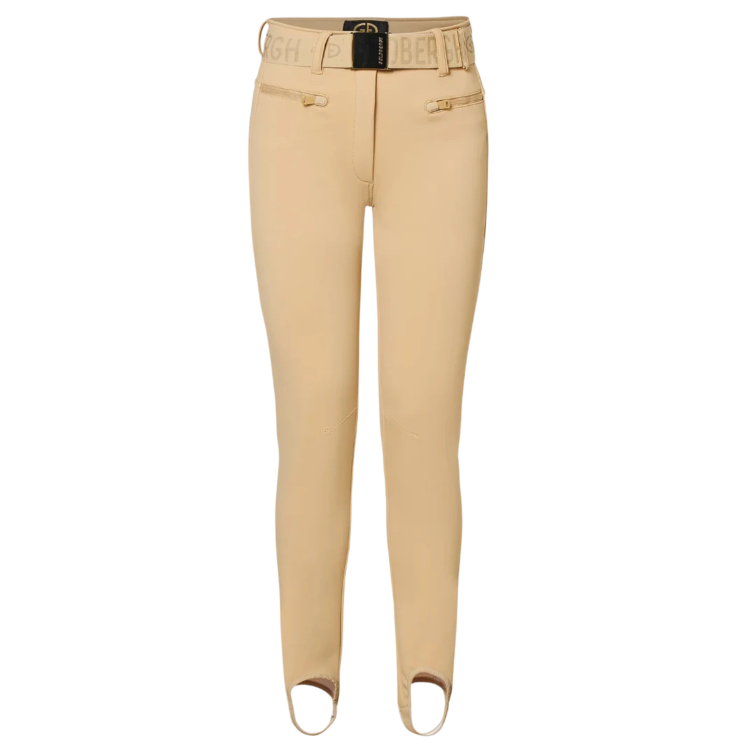 Goldbergh bež ski pantalone donose spoj luksuznog izgleda i vrhunskih performansi na snijegu. Izrađene od toplog, elastičnog softshell materijala, pružaju savršenu zaštitu od hladnoće i vjetra, uz maksimalnu udobnost i slobodu pokreta. Elegantno su krojene tako da istaknu figuru, dok elastični remen s prepoznatljivim Goldbergh logotipom osigurava stabilno pristajanje. Podesive trake za obuvanje na donjem dijelu nogavica drže pantalone na mjestu tokom skijanja. Moderan, sofisticiran model za skijašice koje žele sportski luksuz i besprijekoran stil na stazi.
