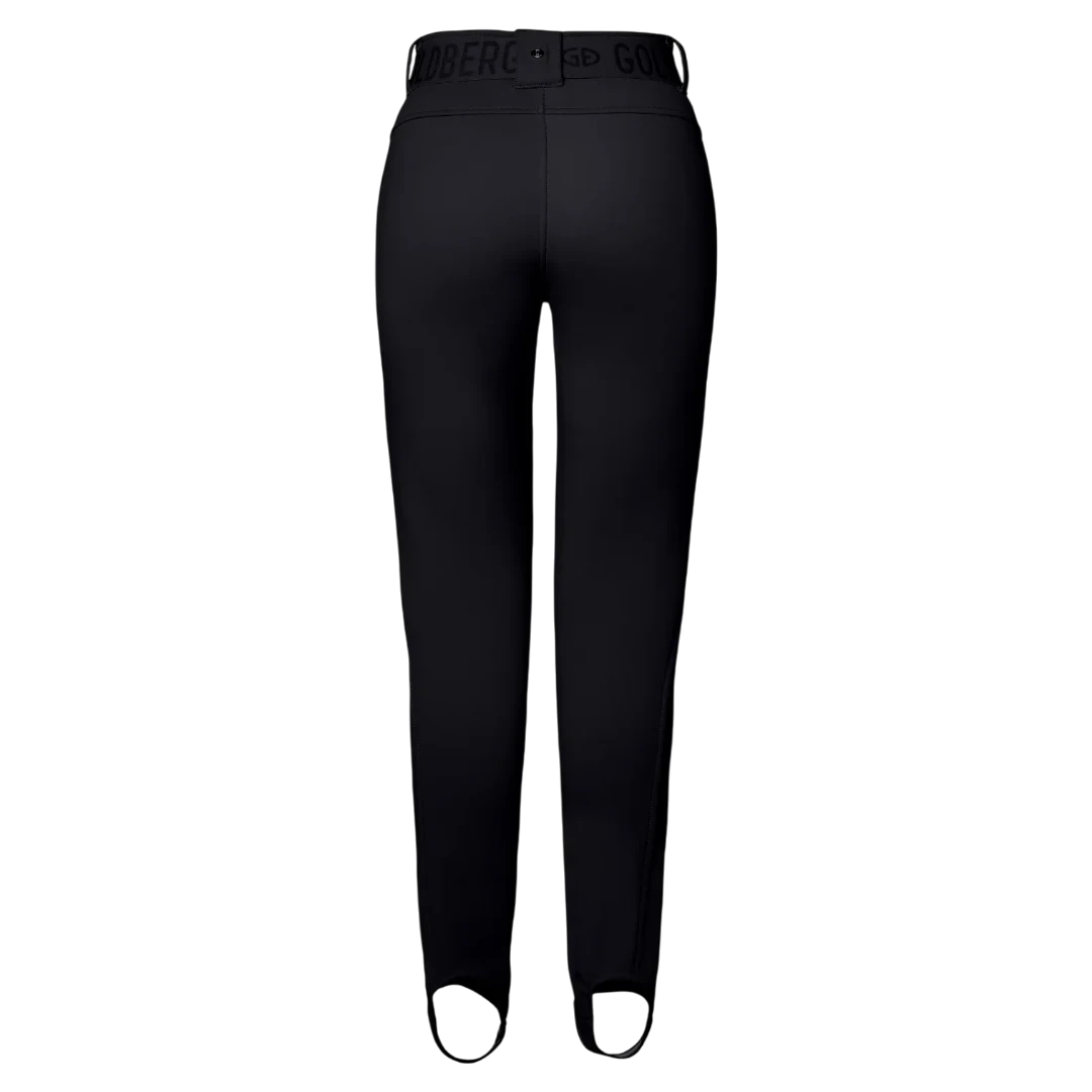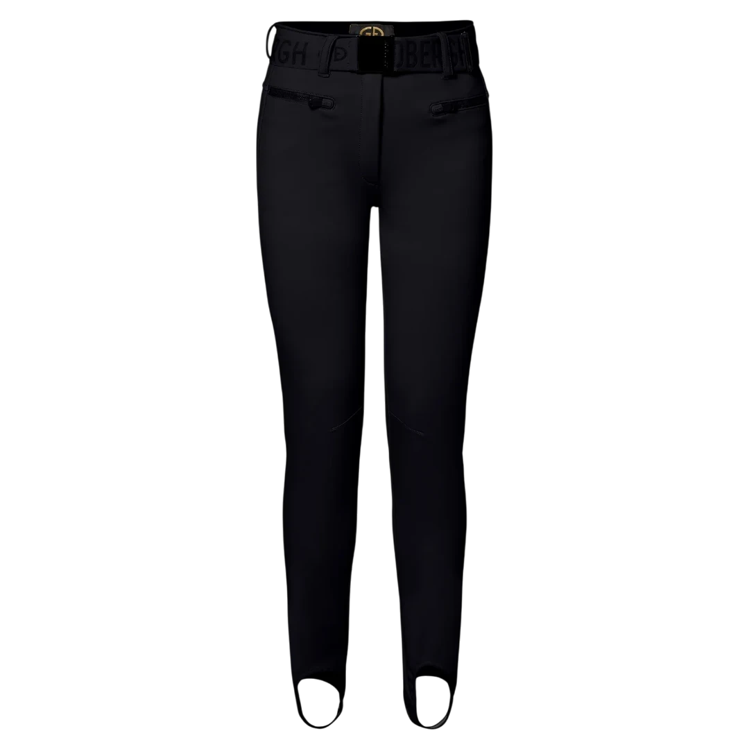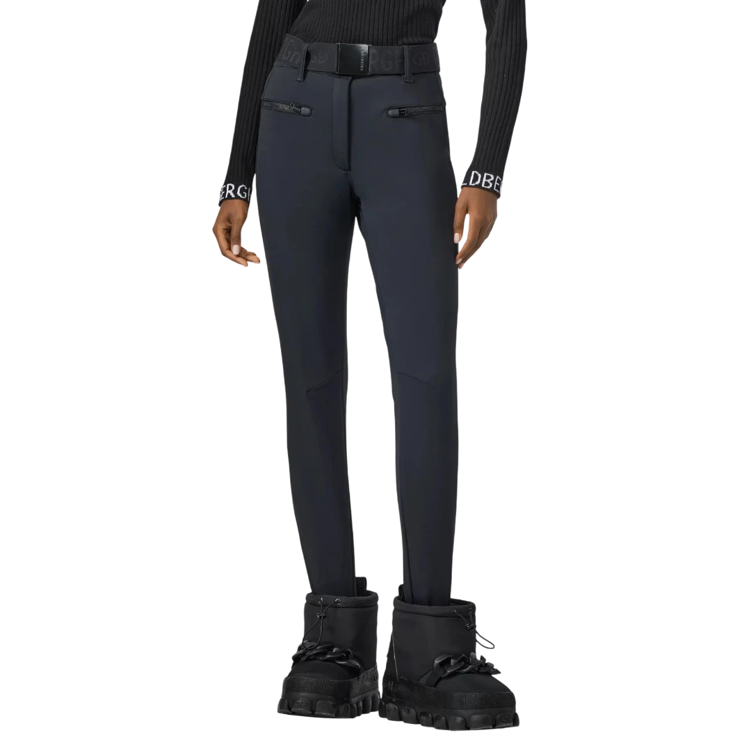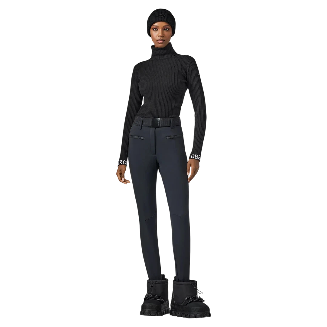 Goldbergh crne ski pantalone kombiniraju vrhunsku funkcionalnost i prepoznatljiv sportsko-elegantni stil brenda. Izrađene od visokokvalitetnog softshell materijala koji pruža toplinu, elastičnost i zaštitu od vjetra, idealne su za dinamično skijanje. Uski kroj lijepo prati figuru, dok elastični remen s Goldbergh logotipom osigurava savršeno pristajanje. Donji dio nogavica s trakama za obuvanje sprječava podizanje pantalona tokom vožnje, pružajući maksimalnu udobnost i praktičnost na stazi. Elegantan, minimalistički model za skijašice koje traže stil i performanse u jednom.