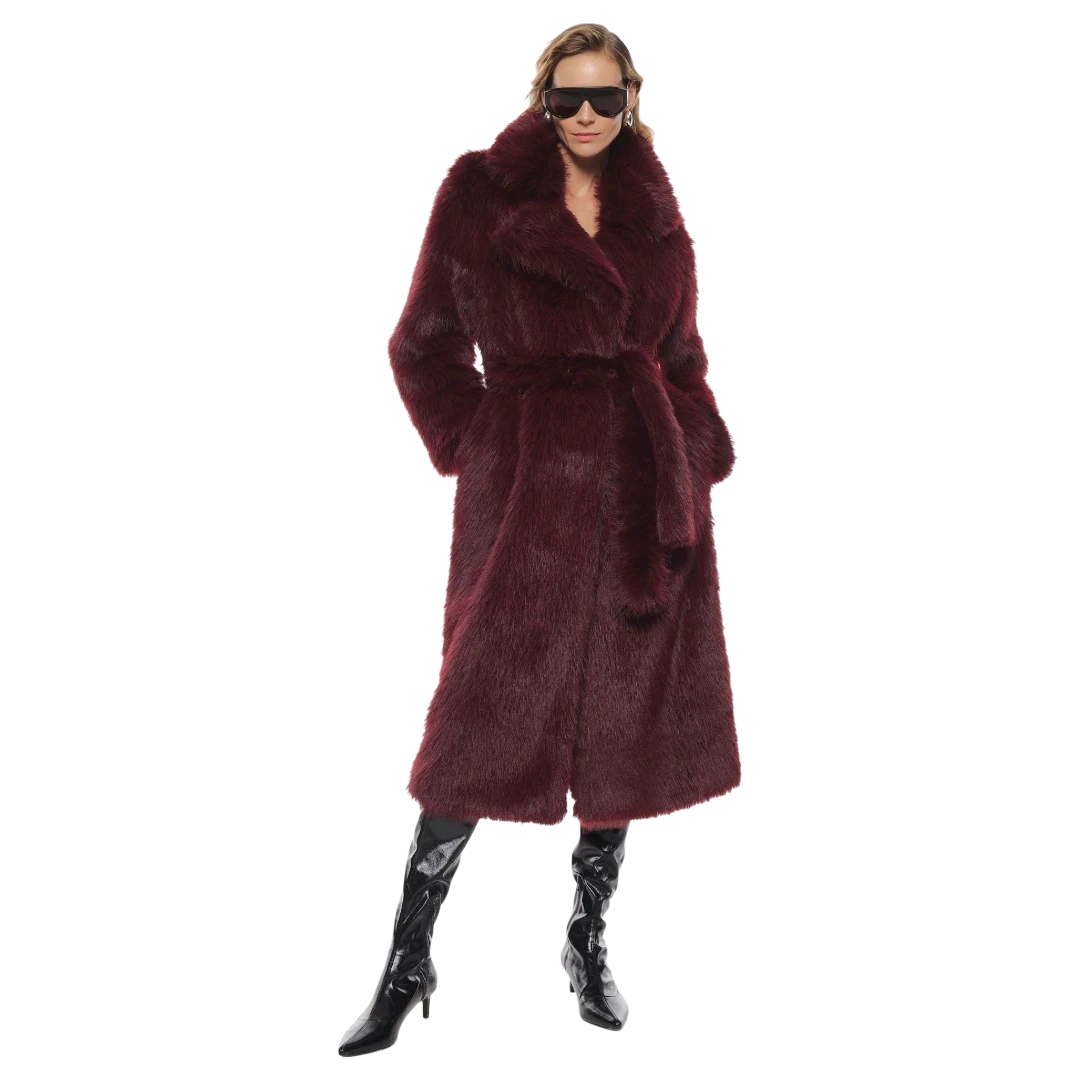 Ovaj Imperial kaput od umjetnog krzna u bogatoj bordo nijansi odiše luksuzom i glamuroznim stilom. Mekana, voluminozna tekstura pruža toplinu i eleganciju, dok pojas u struku ističe ženstvenu liniju i omogućava savršeno prilagođavanje figuri. S raskošnim reverima i sofisticiranim krojem, ovaj kaput je pravi statement komad — idealan za posebne prilike, večernje izlaske ili kao upečatljiv dodatak svakodnevnim kombinacijama. Topao, moderan i chic — simbol zimske elegancije u najljepšem izdanju.