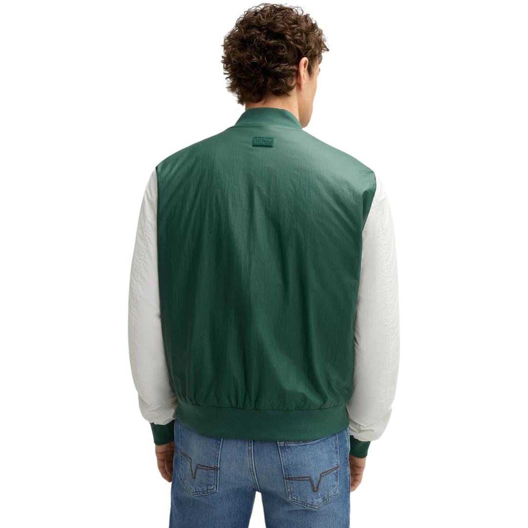 Muška jakna Pietro u college stilu donosi savršen spoj ležernog dizajna i udobnosti. Ističe se klasičnim college okovratnikom s gumiranim logotipom na leđima, što joj daje prepoznatljiv izgled. Ribano pletivo na rubovima rukava i ravnom porubu osigurava optimalno prianjanje i udobnost pri nošenju. Jakna se zatvara patentnim zatvaračem s logotipom, dok dva bočna džepa s preklopom i dugmetom pružaju praktičan prostor za osnovne stvari. Unutrašnji džep s patentnim zatvaračem omogućava sigurno odlaganje ličnih predmeta. Lagana postava s prošivenim detaljima donosi dodatnu toplinu bez narušavanja prozračnosti. Zaokružena gumiranim logotipom na rukavu i logo oznakom sa strane, Pietro jakna je idealan izbor za muškarce koji žele kombinaciju urbanog stila i svakodnevne funkcionalnosti.