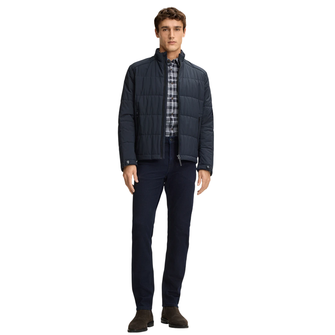 Ova muška JOOP! jakna u tamnoplavoj nijansi donosi moderan, sportski dizajn idealan za hladnije dane. Lagano postavljena i izrađena od izdržljivog materijala, pruža ugodnu toplinu bez glomaznosti. Praktični bočni džepovi s patentnim zatvaračem, visoka kragna i diskretni detalji brenda upotpunjuju čist i urban look. Savršena za svakodnevno nošenje, uz maksimalnu udobnost i zaštitu od vjetra.