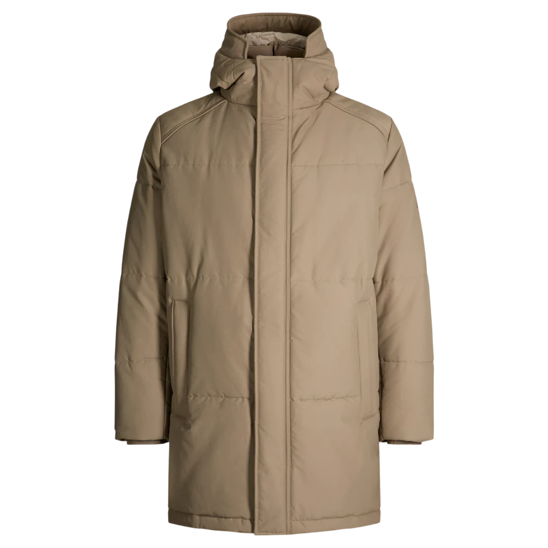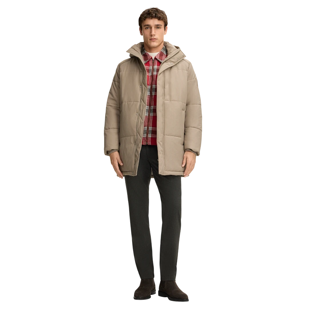 JOOP! muška puffer jakna u modernoj bež nijansi kombinuje savremeni minimalistički dizajn i vrhunsku toplinu za hladne zimske dane. Izrađena od kvalitetne, lagane i izdržljive tkanine, pruža izvanrednu udobnost i zaštitu od vjetra i niskih temperatura. Visoka, oblikovana kragna i skriveno kopčanje stvaraju čist, uredan izgled, dok ravne linije i pažljivo krojeni paneli naglašavaju sofisticiranu JOOP! estetiku. Prostrani bočni džepovi dodaju praktičnost, a neutralna nijansa omogućava lako kombinovanje uz sve tipove outfita – od sportskih do urbanih svakodnevnih kombinacija. Savršen izbor za muškarca koji želi toplinu, stil i eleganciju u jednom komadu.