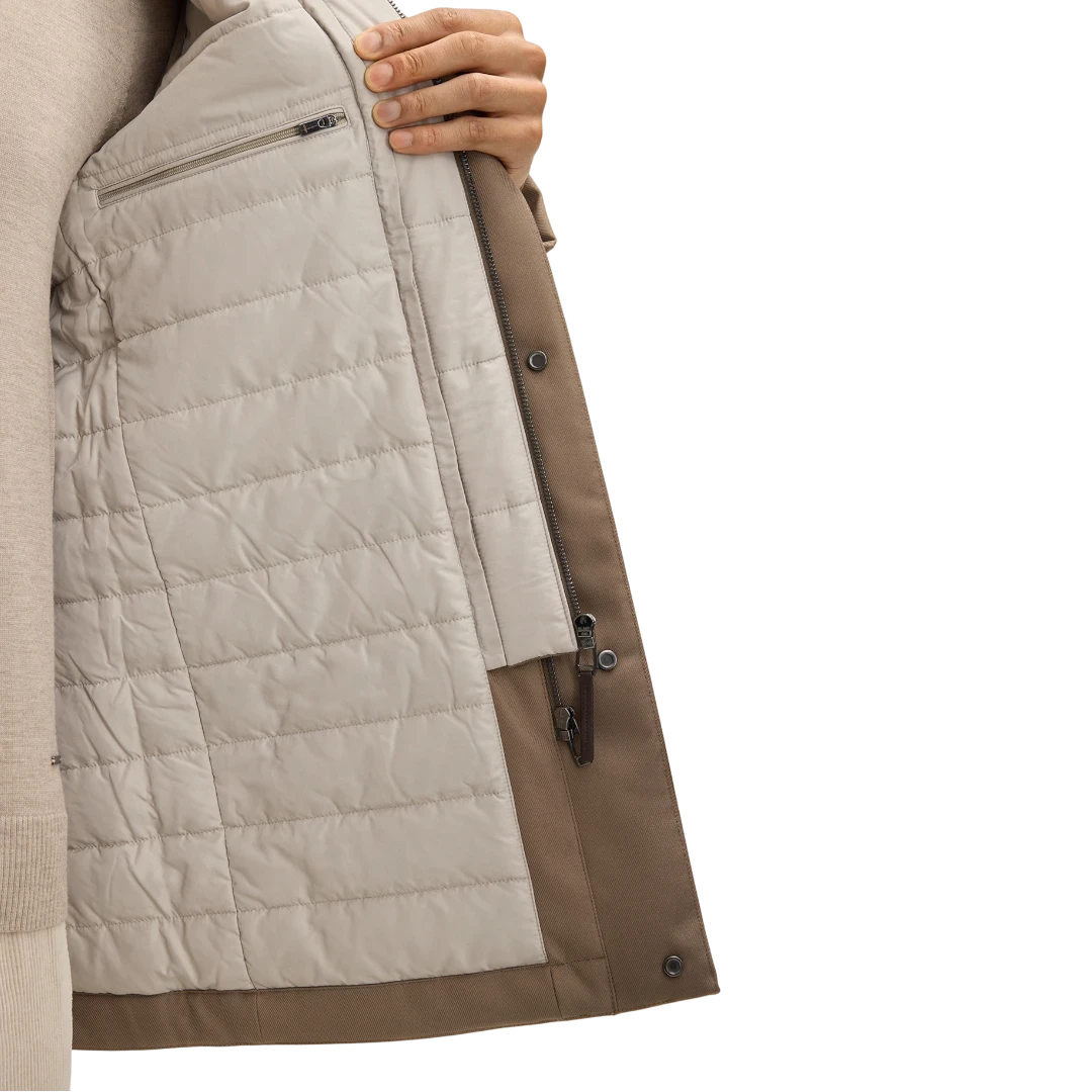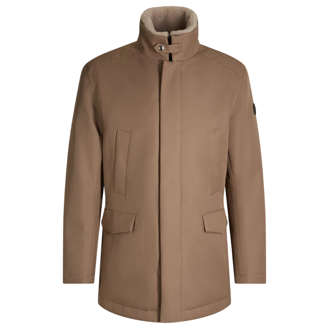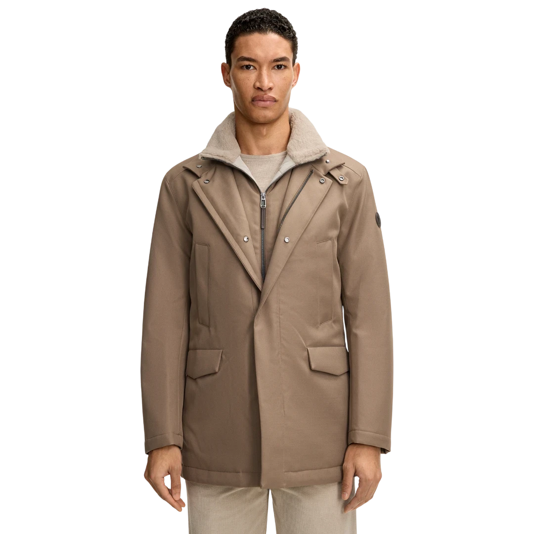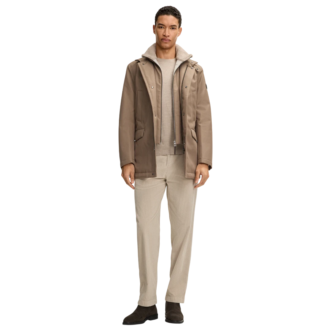 Ova JOOP! jakna u toploj bež nijansi spaja moderan dizajn i maksimalnu funkcionalnost. Izrađena od kvalitetnog, otpornog materijala, pruža odličnu zaštitu tokom hladnih dana. Visoka kragna s mekanom, sherpa podstavom donosi dodatnu toplinu i luksuzan osjećaj, dok skriveni rajsferšlus i dugmad održavaju čist, minimalistički izgled. Prošiveni džepovi s poklopcem i diskretni JOOP! amblem na rukavu naglašavaju sofisticiranost ovog modela. Idealna kombinacija topline, udobnosti i urbanog stila.