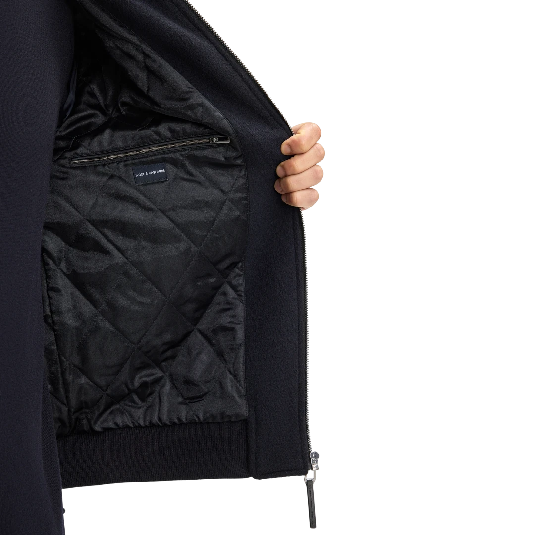 Ova JOOP! muška jakna donosi moderan i sofisticiran izgled u klasičnoj bomber silueti. Izrađena od kvalitetnog, toplog materijala, pruža odličnu izolaciju za hladnije dane. Detalji poput mekog krznenog ovratnika, robusnog rajsferšlusa i velikih prednjih džepova daju joj praktičnost i eleganciju u isto vrijeme. Rebraste manžetne i porub osiguravaju udobno i sigurno pristajanje. Jakna koja savršeno spaja funkcionalnost, toplinu i prepoznatljiv JOOP! stil.