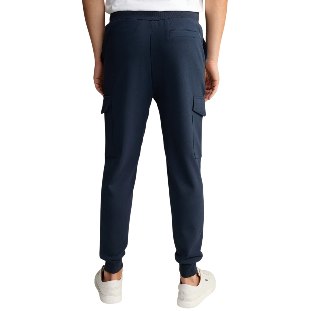 Muške Balin joggers predstavljaju savršen izbor za svakodnevni stil. Ovaj model u regular fit kroju pruža izuzetnu udobnost i slobodu pokreta, dok pojas s konopcem, opremljen logotipom na lijevoj strani, osigurava sigurno pristajanje. Elastični porubi na nogavicama ističu moderan dizajn, a funkcionalnost dodatno upotpunjuju dva bočna džepa s prorezom, dva cargo džepa i jedan stražnji džep sa logo zastavicom na desnoj strani. Ova trenerka u teget boji savršeno spaja stil i praktičnost, čineći je idealnim izborom za urbani, svakodnevni izgled.